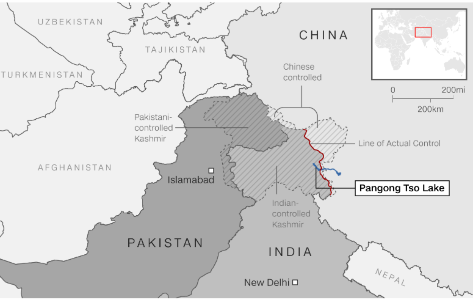 6月15日,在拉達克東部的加爾萬河谷、在班公錯湖北岸,中印軍隊開打,這是40多年來第一起致命衝突,造成20名印度軍人死亡,儘管中國不公布死傷人數,但是印度推測解放軍死亡人數似乎在30-40人之間。
