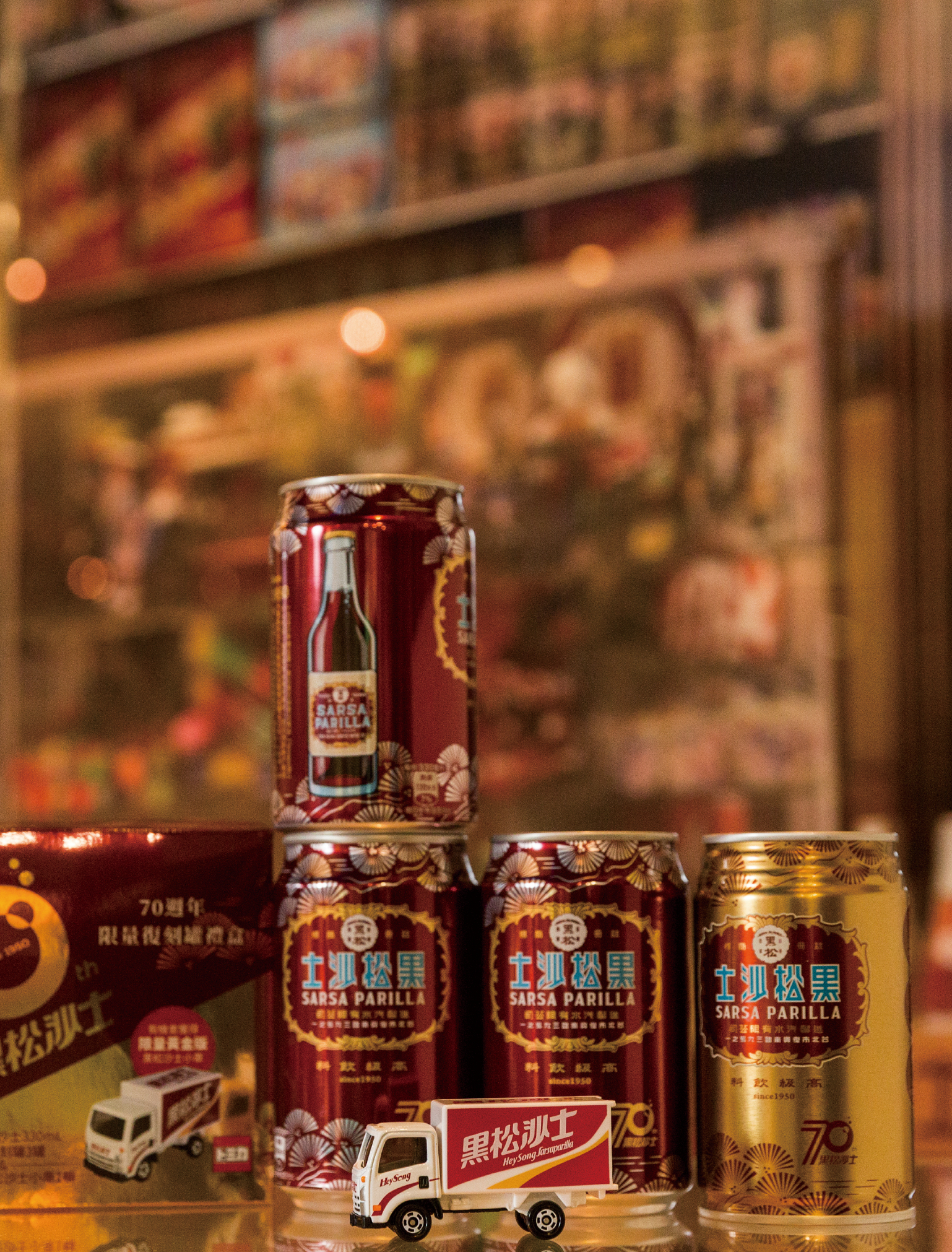 為了歡慶黑松沙士上市70周年,黑松特別推出限量復刻罐禮盒,在瓶身上重現第一版黑松沙士的商標,搭配Tomica黑松沙士小車,喚起不同世代對於黑松沙士的共同記憶。走進黑松飲料博物館,看著陳列著的各式飲品,不僅能看到品牌產品的進化史,更能從中感受到台灣社會的變遷,以及黑松與這塊土地共同成長的情感連結。