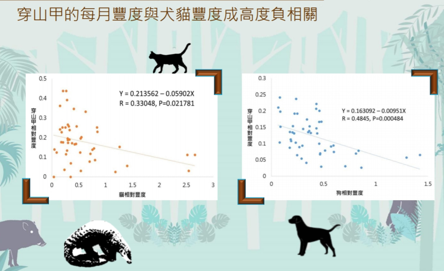 野生動物急救單位近年來接收了不少穿山甲遭犬隻攻擊受傷的個案,從自動相機監測資料也發現,穿山甲與流浪犬的相對豐度呈現明顯負相關,當流浪犬數量上升時,穿山甲數量就下降。林華慶認為,不要餵食遊蕩犬貓是最好的解決方式,遊蕩犬貓只要食物充足就會不斷地繁衍,造成遊蕩犬貓的數量持續增加,攻擊野生動物的機會也就愈來愈多。