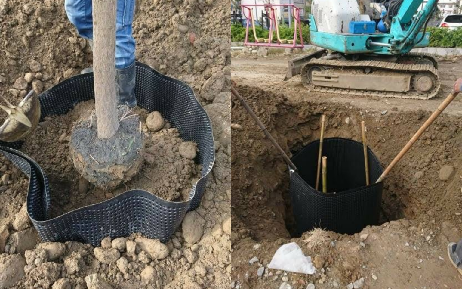 近年來我們考慮鋪面安全,盲目的導入導根板並訴求人與樹和平相處。採用導根板直接將土球框住,非但根系無法伸展,更未考慮風與抓地力的物理效應。
