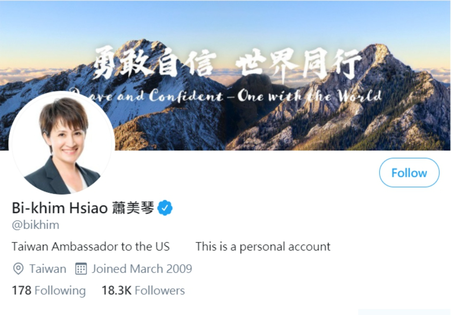 為了將公務與私人領域做出區隔,蕭美琴還在推特上特別標註「This is a personal account」。