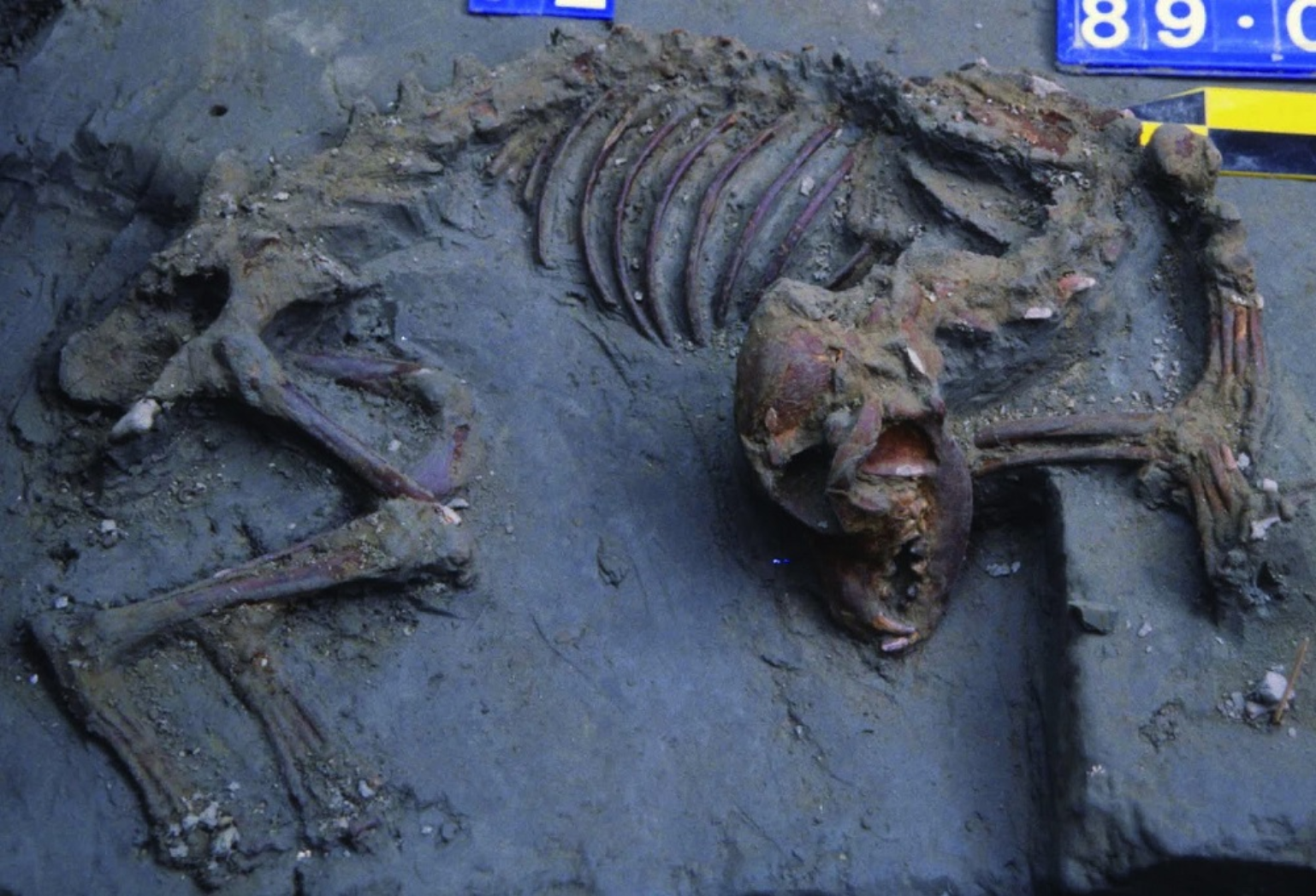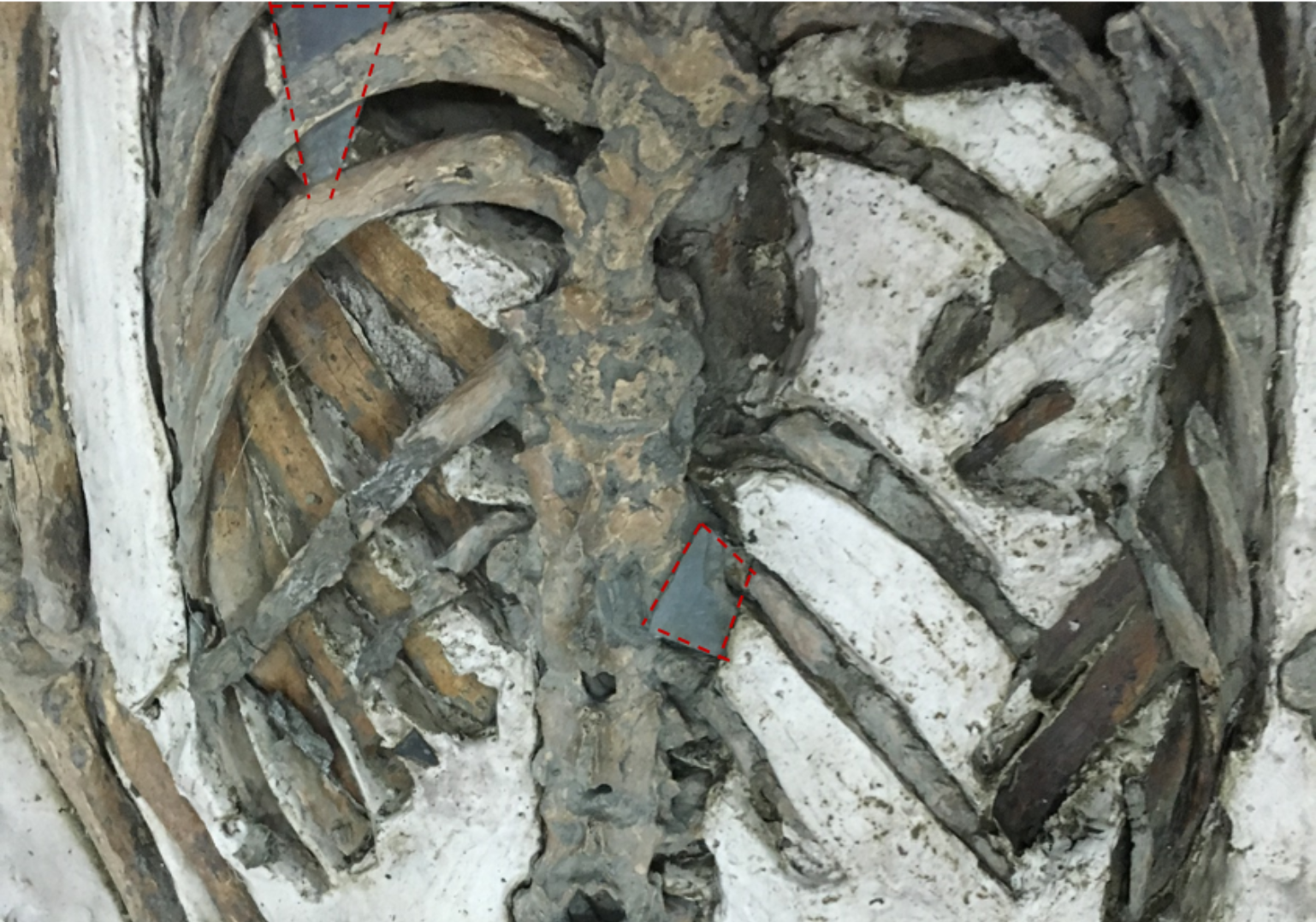 出土遺骸背後插著頁岩製成的箭,大量貝殼從遺址中挖出。南科園區曾是海洋,隨著洪氾沖積成平原,距今 5000 年前人們來到此地,運用各種環境資源謀生存。