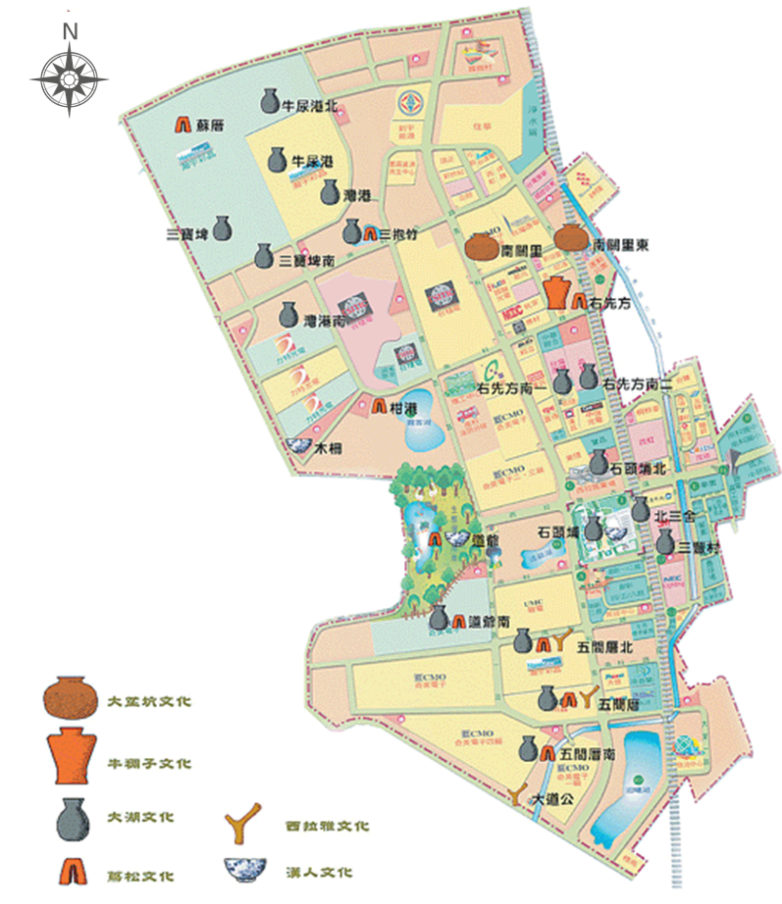 其中大坌坑文化是南科目前已知最早的史前文化,主要分布於南關里遺址、南關里東遺址,埋藏深度分別約為海拔 -1.1 及 -1.6 公尺。