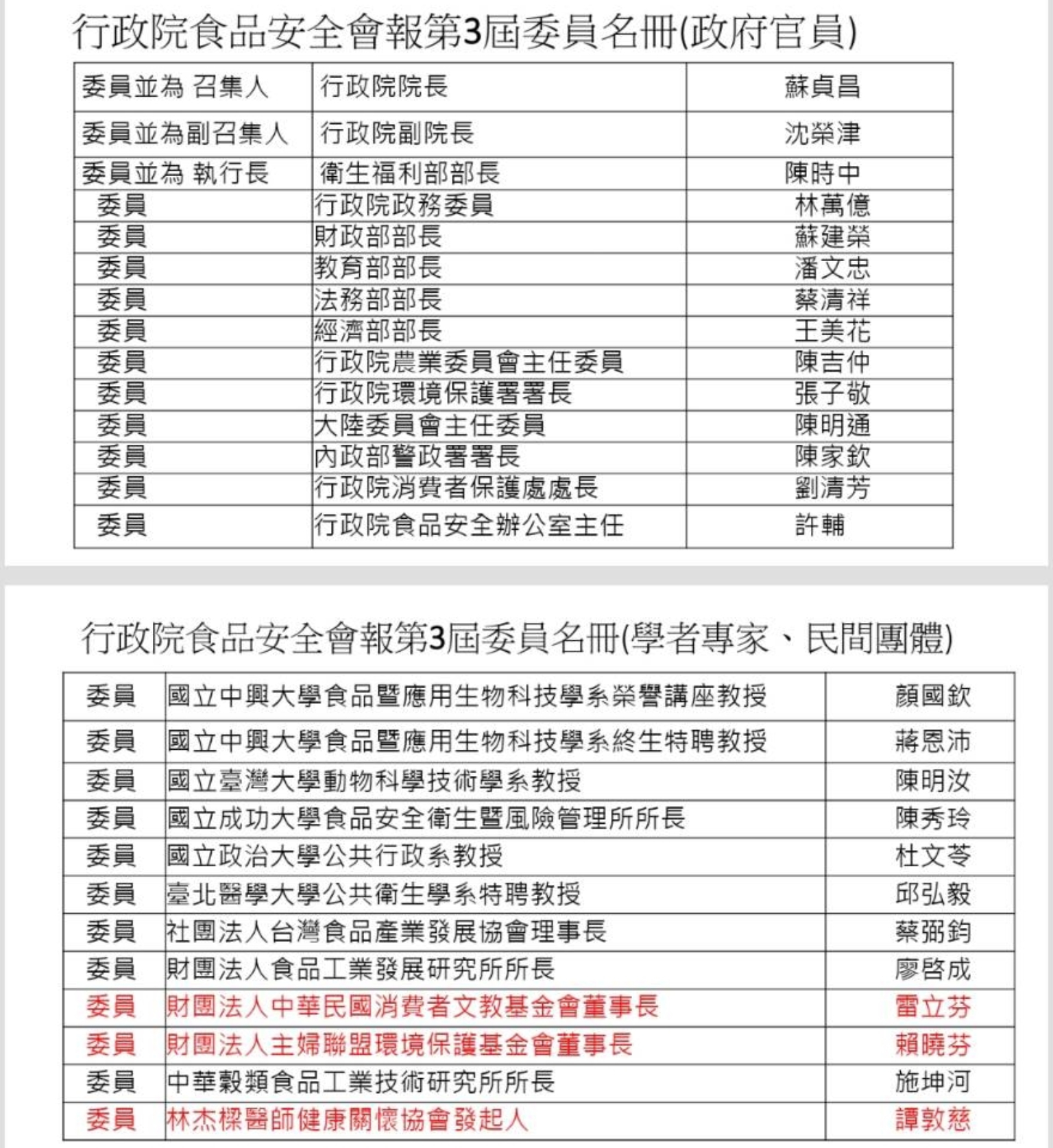 對此,國民黨文傳會副主委鄭照新主動出示紀錄表示,食安會報召集人是行政院長蘇貞昌,執行長是衛福部長陳時中,成員還包括消基會董事長、主婦聯盟董事長、林杰樑醫師基金會負責人等民間團體,但最近一次開會是在2019年6月21日,換言之已經有1年3個月沒開會了。