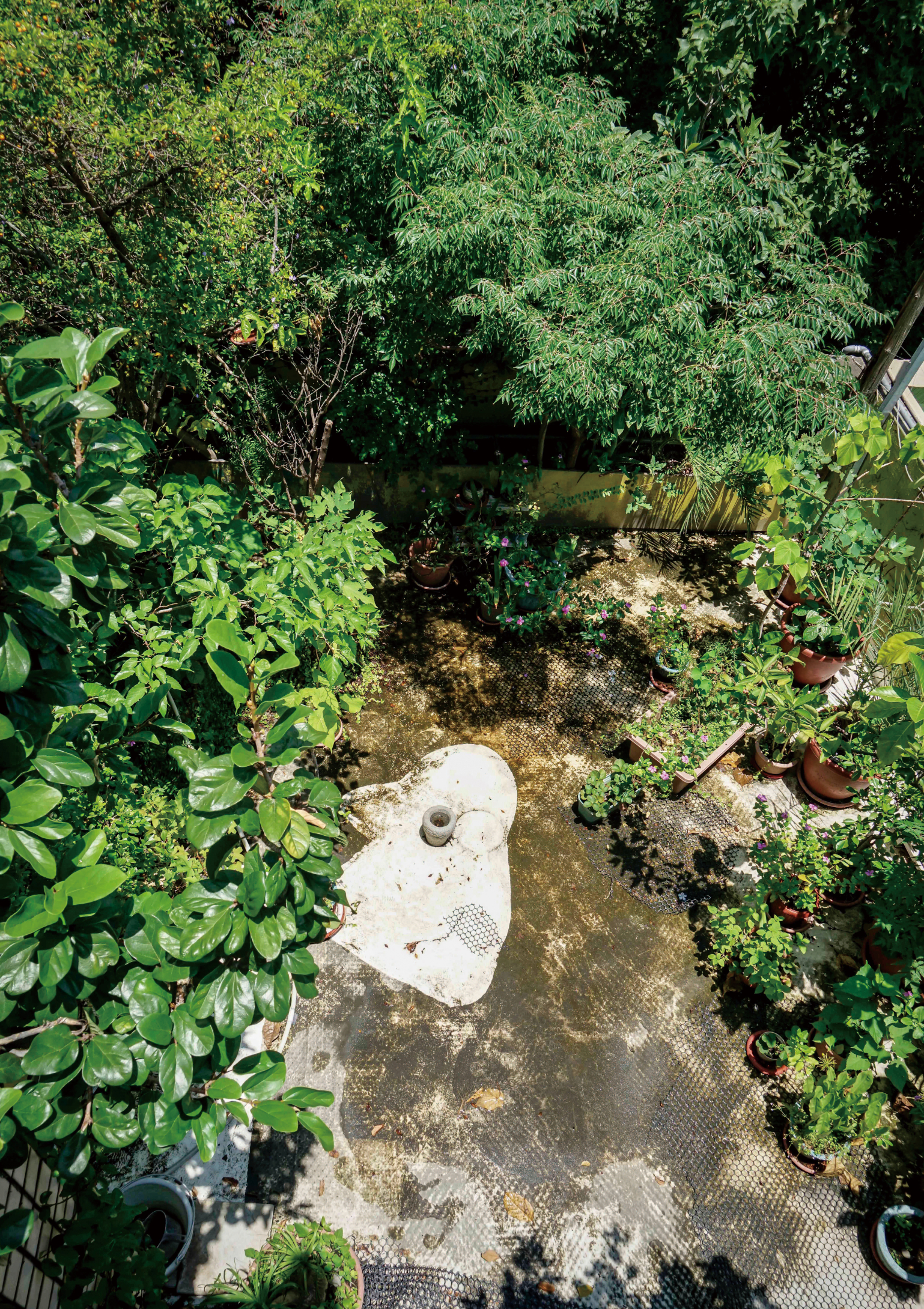 走進陳玉峯在台中的透天厝住家,院落和陽台的叢生綠意,彷彿也說明了他面對大自然的那份態度。種在門前的薜荔,用將近30年的時光爬滿了牆,枝藤長成了人的小腿一般粗,他笑說都要可以做盪鞦韆了。屋頂陽台的植物們,陳玉峯則一派輕鬆地說:「都是鳥種的。」從頂樓可以窺看每年都來此築巢繁衍後代的黑冠麻鷺,前庭的龍眼樹上,還有綠繡眼的小窩,自然生態,在此生生不息。