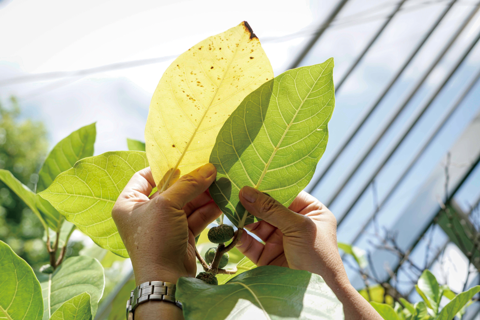 拾起一黃一綠兩片葉子疊起,陳玉峯雙手將葉子往空中一擺,讚嘆造物之美,他說天空底下沒有醜陋的東西,「端看你怎麼去面對它。」
