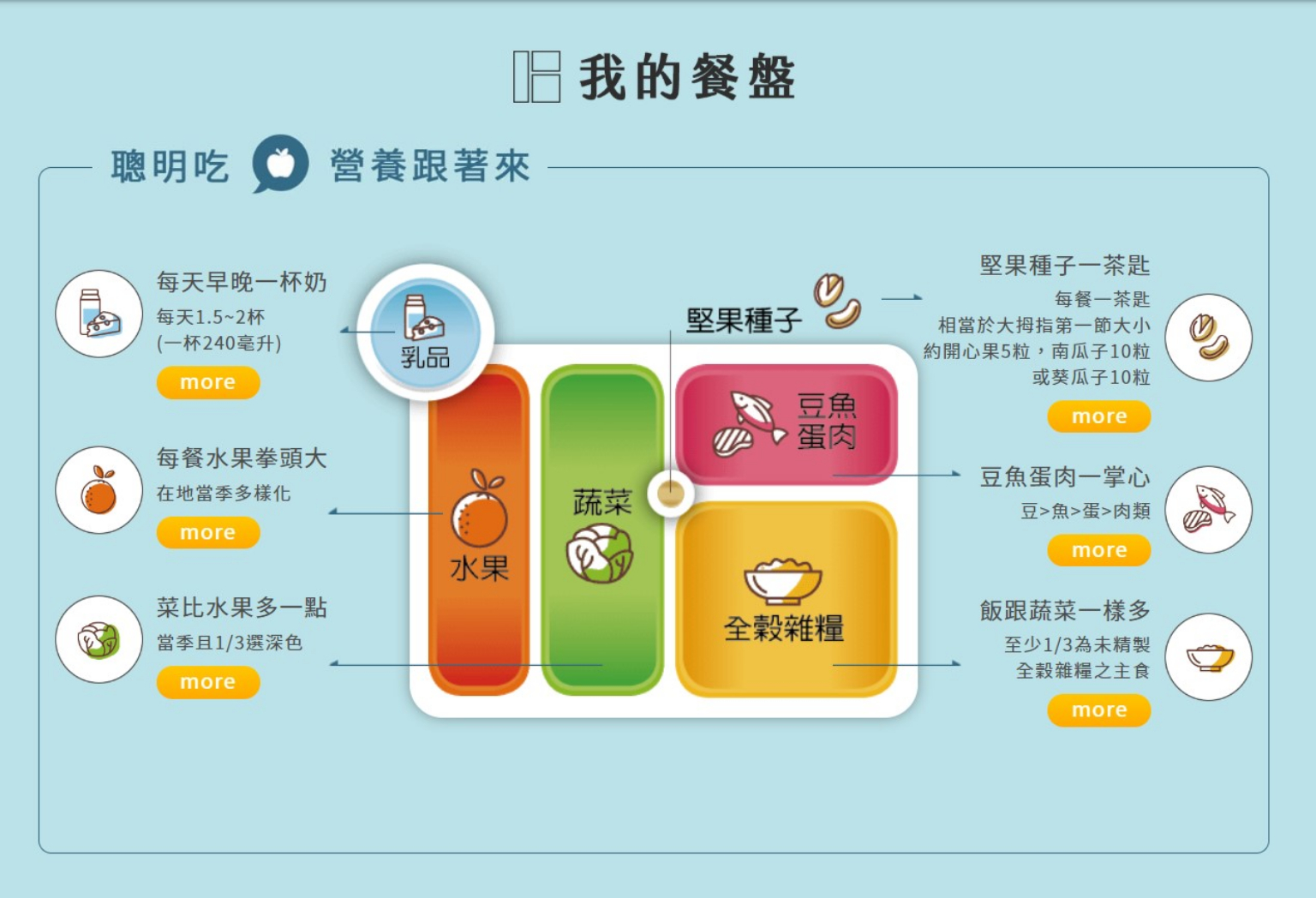 若是不清楚何謂「均衡飲食」,也可參考國健署提供的「健康餐盤」,不用斤斤計較熱量,但可以讓食材選擇更健康。高繪雯也表示,「其實8小時進食就可以想像是你上班的這段時間,你一樣可以吃早餐,然後晚餐提早一點吃,中餐就可以精簡,有的人直接變成午餐跟晚餐,下午可以補充一些水果。」