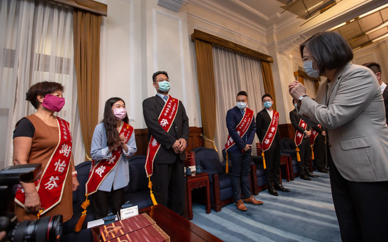 蔡英文說,還有幾位當選人,今天無法來到現場,像是「鞍馬王子」李智凱,正在專心備戰奧運,準備締造台灣體操的新紀錄;以及非常有名的Janet謝怡芬,是由教導她台語及台灣文化的媽媽代表她來分享這個榮耀。