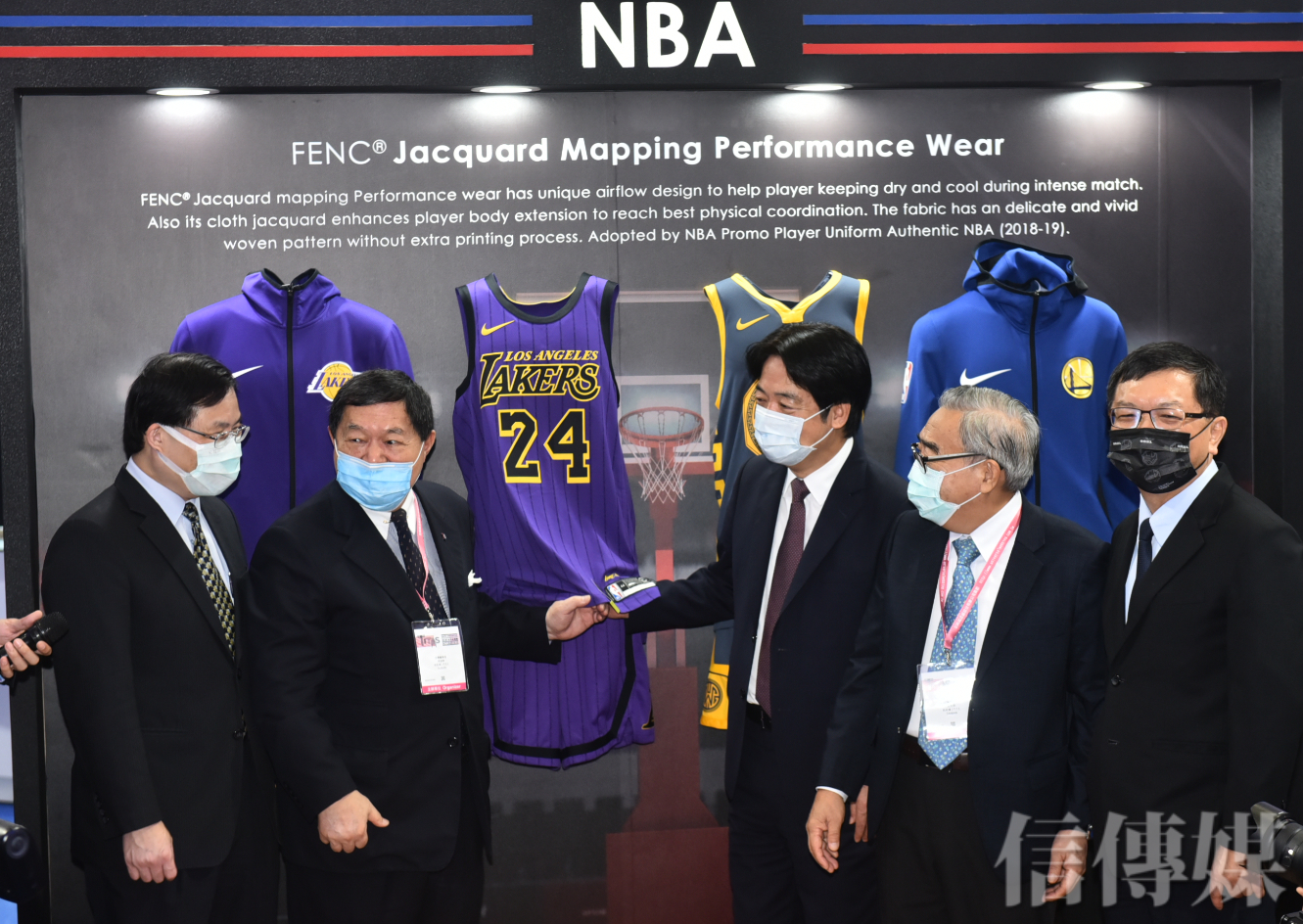 賴清德指出,湖人隊已使用遠東集團的產品,整場比賽打下來,衣服並不會因為汗而濕透,可見機能衣的重要。