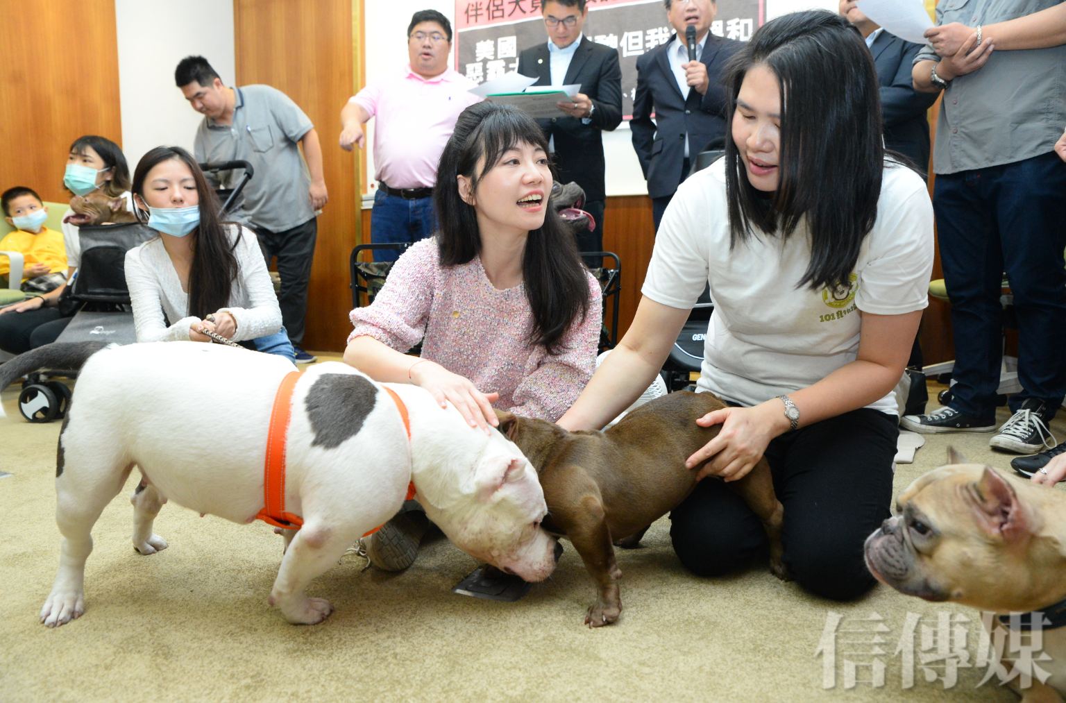 由於美國惡霸犬過去曾與比特犬混種,此預告若成為正式公告,惡霸犬也將成為禁養的犬隻種類之一,今(15)日民進黨立委劉建國、蔡易餘、高嘉瑜、林楚茵共同召開記者會,針對農委會最新的預告修正,與飼主共同為美國惡霸犬請命。