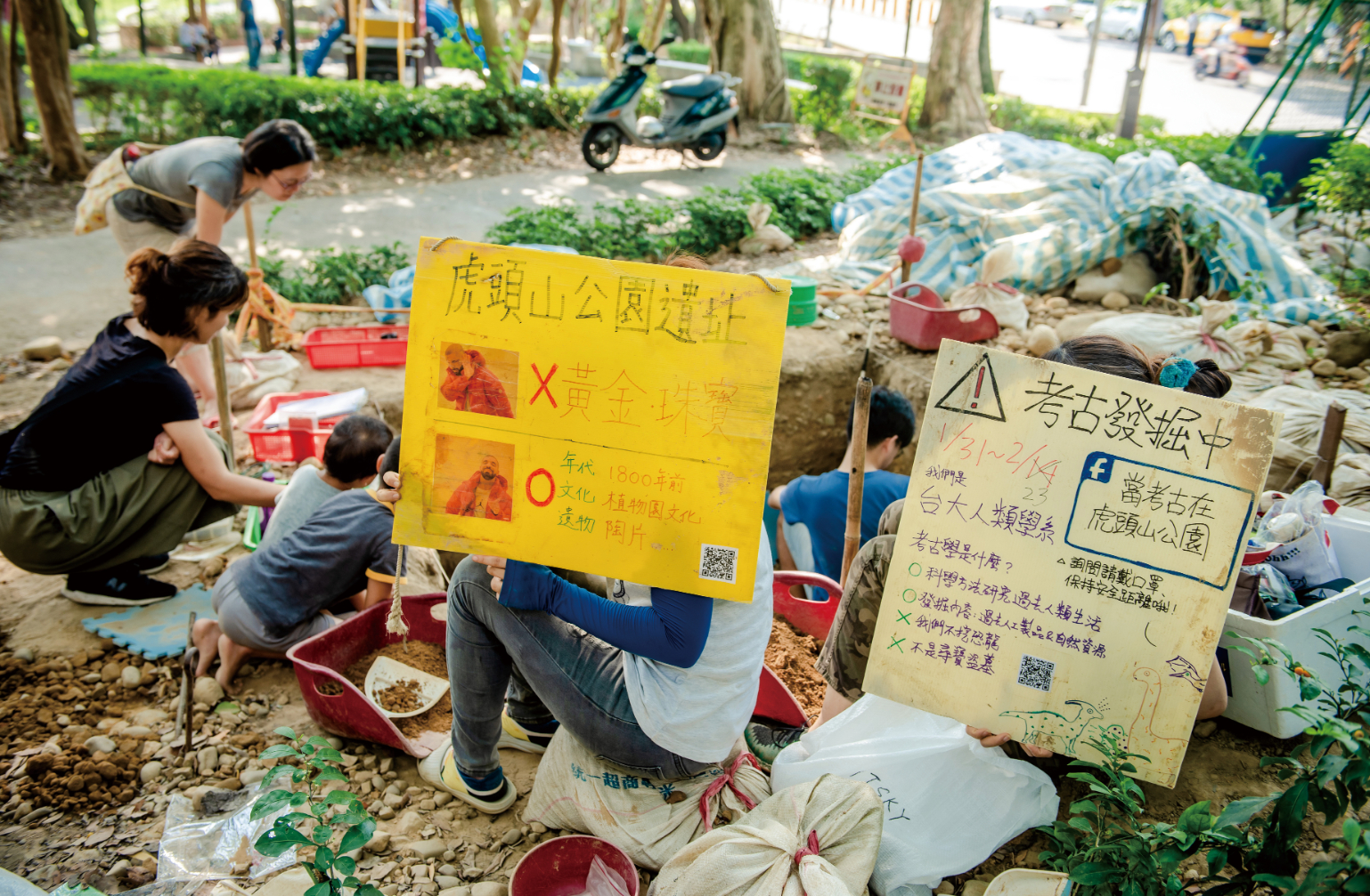 台灣大學人類學系助理教授江芝華受桃園市政府文化局委託,2017年開始針對「虎頭山公園遺址」進行考古研究,3年來江芝華跟學生一起,利用寒、暑假期間持續發掘。原本初估能在1個月內完成,開挖後才發現地下文化層有豐富的遺留,江芝華說,「光是鄰近的不同坑位,在時間上就有一、兩千年的差異,不同區塊也能看出有不同的活動與功能。」更顯露出這個遺址的價值。