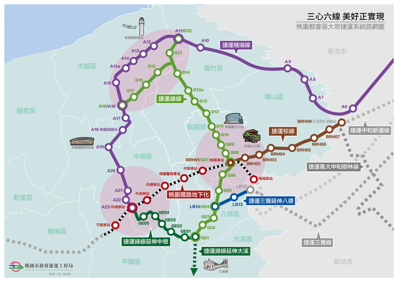 桃園人口至109年9月已逾226萬人,在人口、產業及都市空間發展變化下,未來將有桃園、中壢及航空城特區「三都心」,地鐵、捷運規劃也是依此串連,並連結大台北都會區捷運系統。