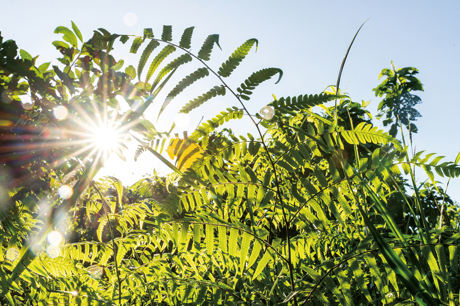 從東端口走入古道,前段便是在森林中無止盡的爬升,從海拔200公尺上升到2936公尺的倫太文山頂。一開始樹型多變的闊葉木擋不住猛烈的陽光,地表的草蕨與灌叢不斷往腳邊襲來,彷彿要將路徑吞沒。隨著雙腳踩踏、汗滴入土,陽光慢慢被擋在濃霧的結界之外,森林披上一層白紗,常常一不留神,巨大的紅檜、扁柏豁然出現在身旁。