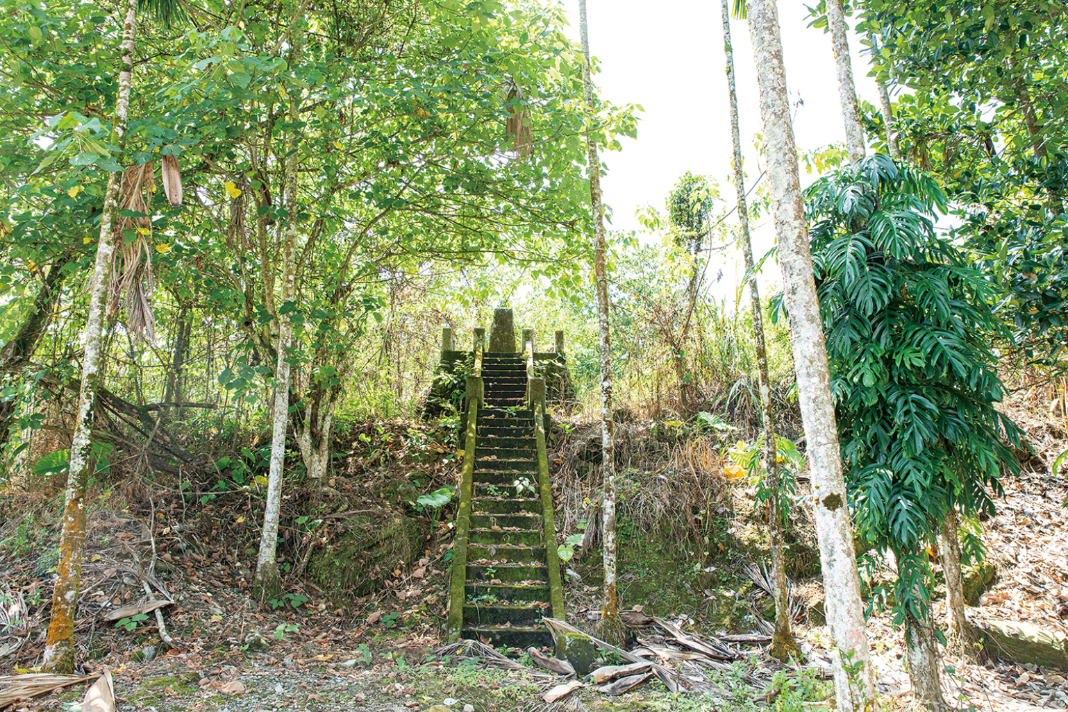 東北季風在山頂呼嘯而過,返家的大隊人馬不敢在山頂逗留,順著支稜西下。在一片柳杉造林中,杉木長得筆直、密集,彷如守衛的士兵,地表無植被,滿覆深棕色的枯枝葉。突然前方出現人工堆砌的石板結構,馬詠恩忍不住心中的悸動,丟下身體的疲憊往前狂奔,跪在石板的遺址前痛哭。