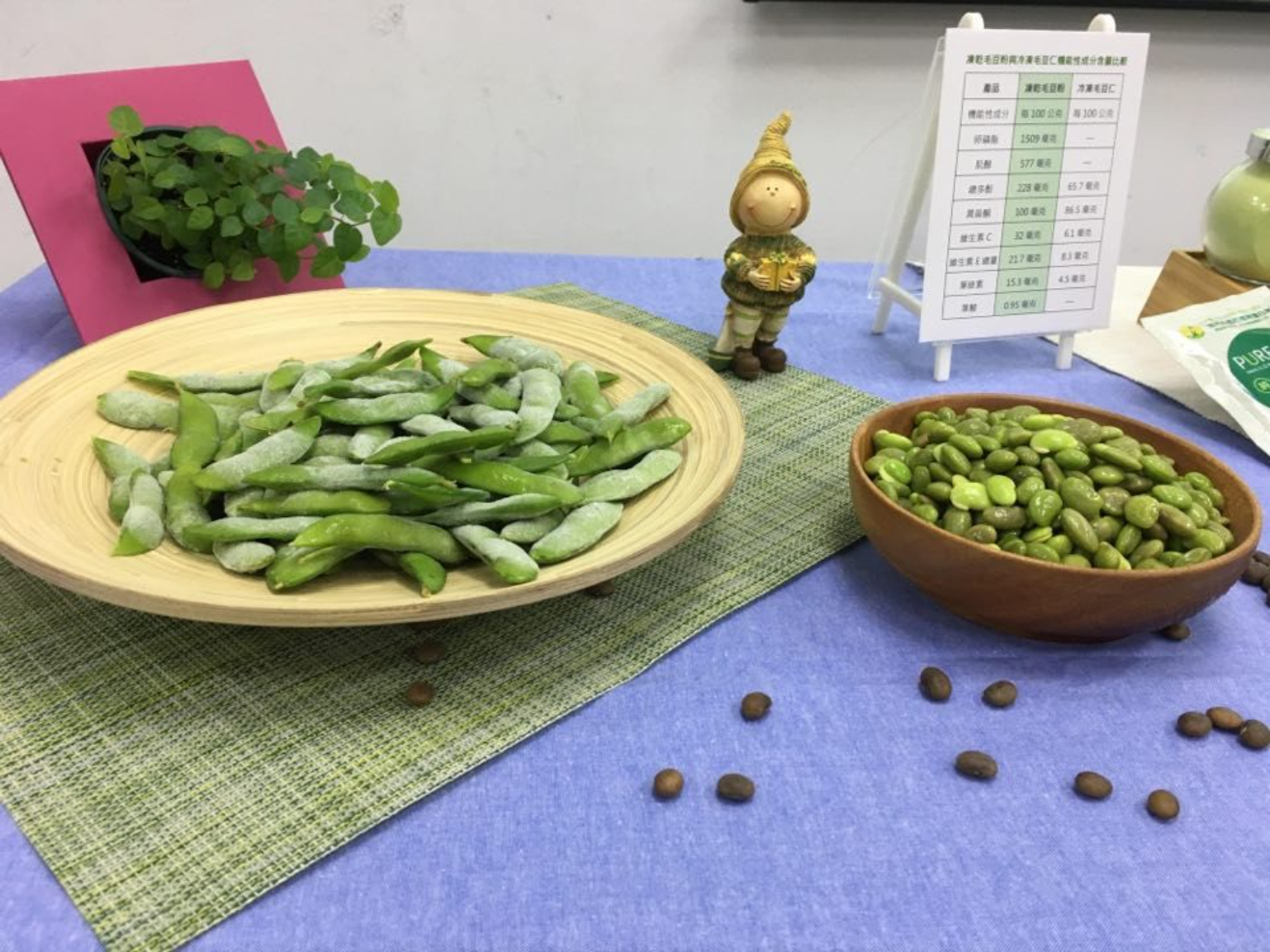 台灣毛豆是「吃的」農糧作物中,外銷產值最高的作物,但4成無法外銷的格外品則賣不到好價錢。高雄區農業改良場可將格外品毛豆仁製成冷凍乾燥毛豆粉,不僅保留毛豆零膽固醇,高蛋白質、高膳食纖維的營養價值,還能維持毛豆近似抹茶的原色,已開發成機能性飲品。凍乾毛豆粉每公斤1,500元,可讓毛豆仁價值一躍成6倍。