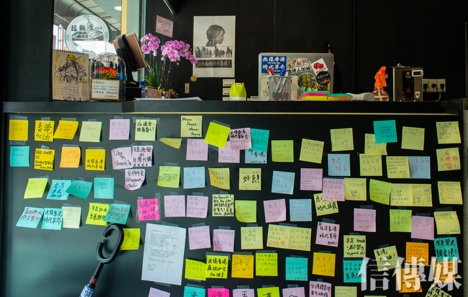 雖然保護傘餐廳低調重新開幕,不過在門口可以看見一盆祝賀盆景,是由立法院長游錫堃所致贈,並寫著「無畏無懼」四個字表達對港人的支持,而店內另一個祝賀盆景則是由立委范雲所致贈,上面寫著「願榮光歸香港」。