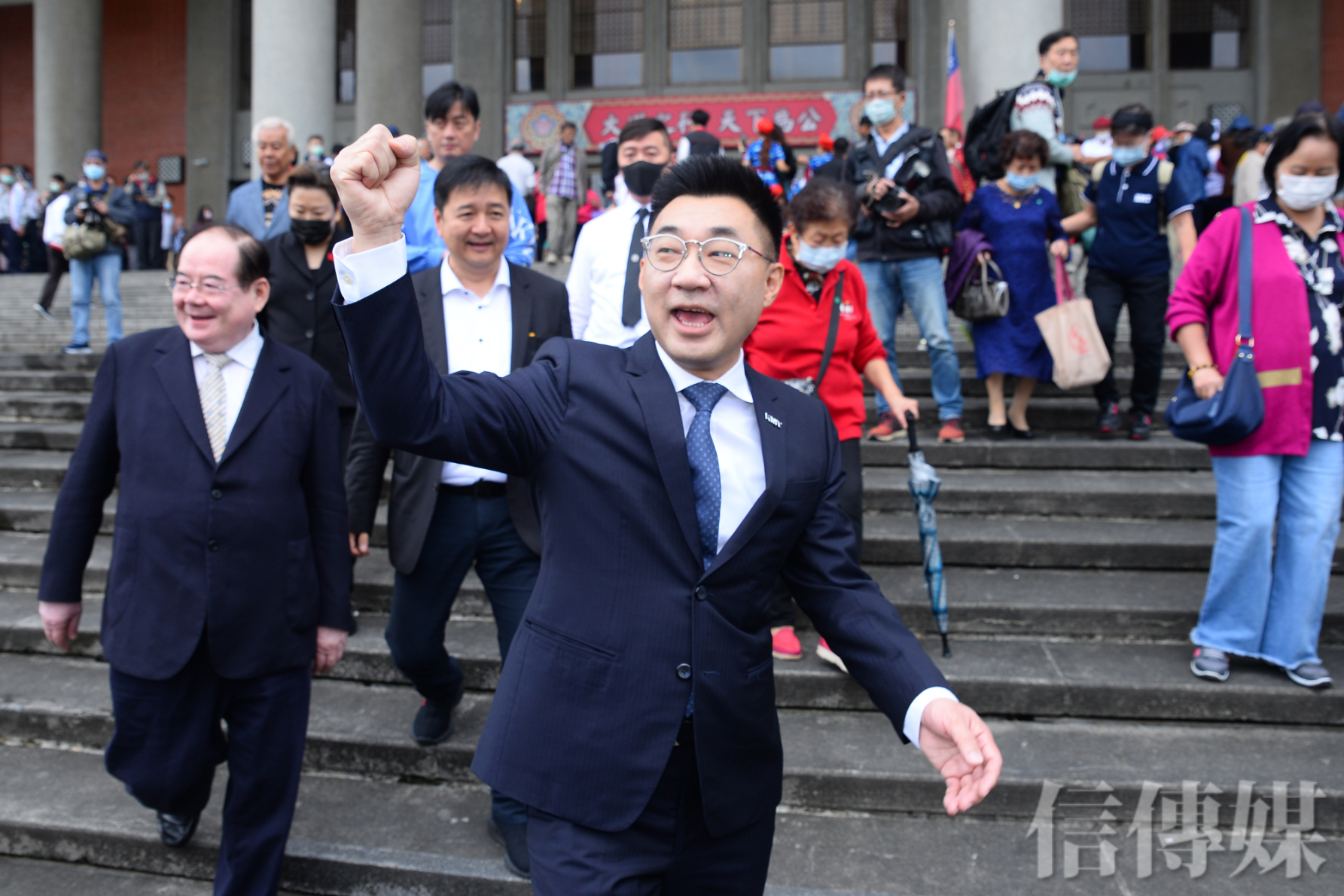 國民黨主席江啟臣率領黨部主管、中常委等人,向國父遺像獻花。(攝影/趙世勳)