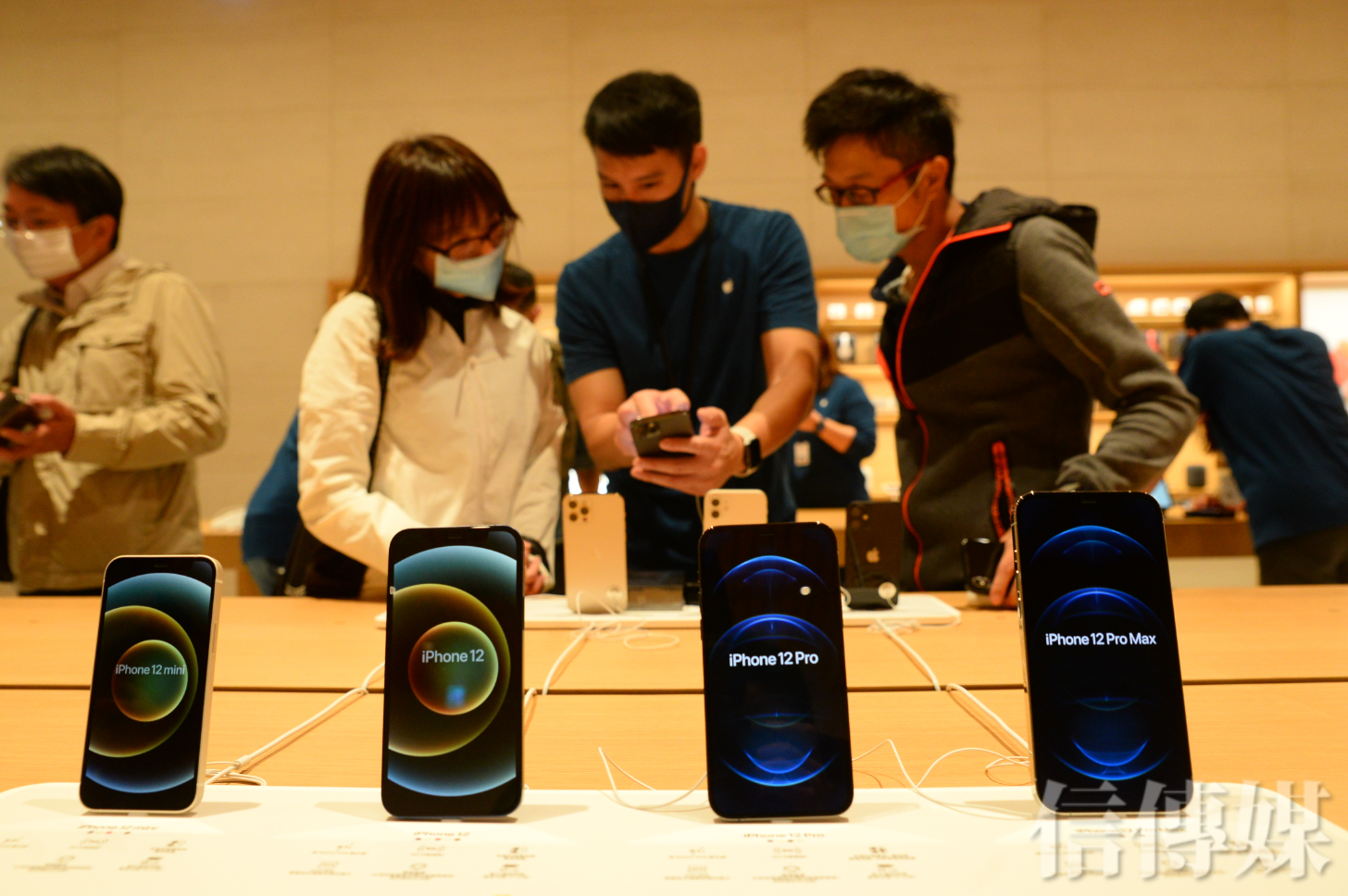 蘋果(Apple)iPhone12系列中的iPhone 12 Pro Max以及iPhone 12 mini13日正式開賣,電信商除了亞太電信之外,都沒有特別舉辦上市活動,不過Apple Store直營門市仍開放線上預購的消費者可以預約取貨,13日位於Apple Store信義A13店內一早八點門口人潮洶湧,買氣相當熱烈。