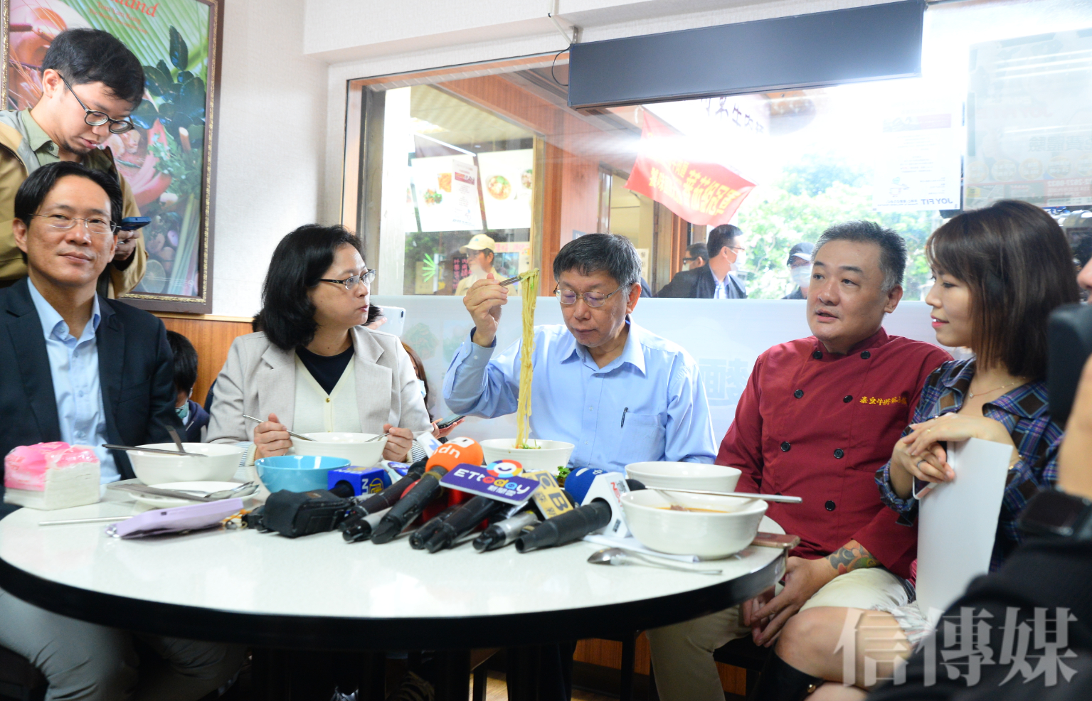 今(13)日藍綠政治人物齊湧「牛肉麵店」,柯文哲更親赴內湖區牛將軍牛肉麵店親自吃了一碗「牛肉麵」,同時也和民眾黨立委賴香伶、張其祿一同發表「兩個原則、四個建議」。