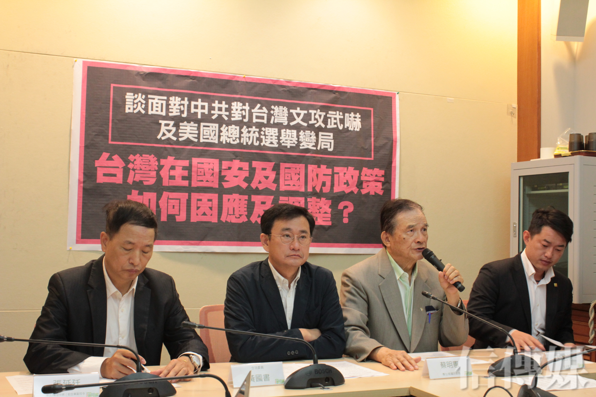 立法院今(17)日一場「中共對台灣文攻武嚇及美國總統選舉變局」記者會,與會立委、退將、學者均對國人防範中共、支持國防的心防意識感到憂心忡忡。蔡明憲甚至直言,總統府、行政院都曾被中共網軍滲透,要是兩岸交戰,中共第五縱隊將對國家高層執行斬首行動。
