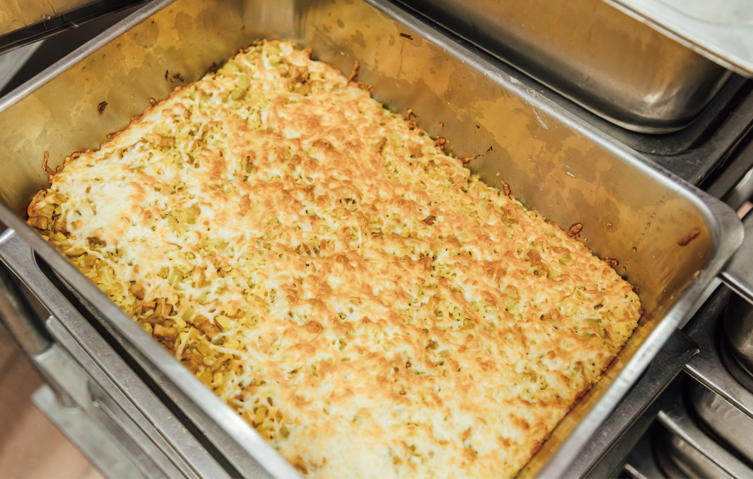 午休的鐘聲甫響起,營養午餐的餐車便已出現在廊道的底端,飢腸轆轆的孩子們迫不及待地依序領餐,這一日的菜單有薑黃焗飯、鹹酥什錦菜、炒青菜和山藥濃湯,發現了嗎?今天是蔬食特餐,但孩子們一樣吃得津津有味。