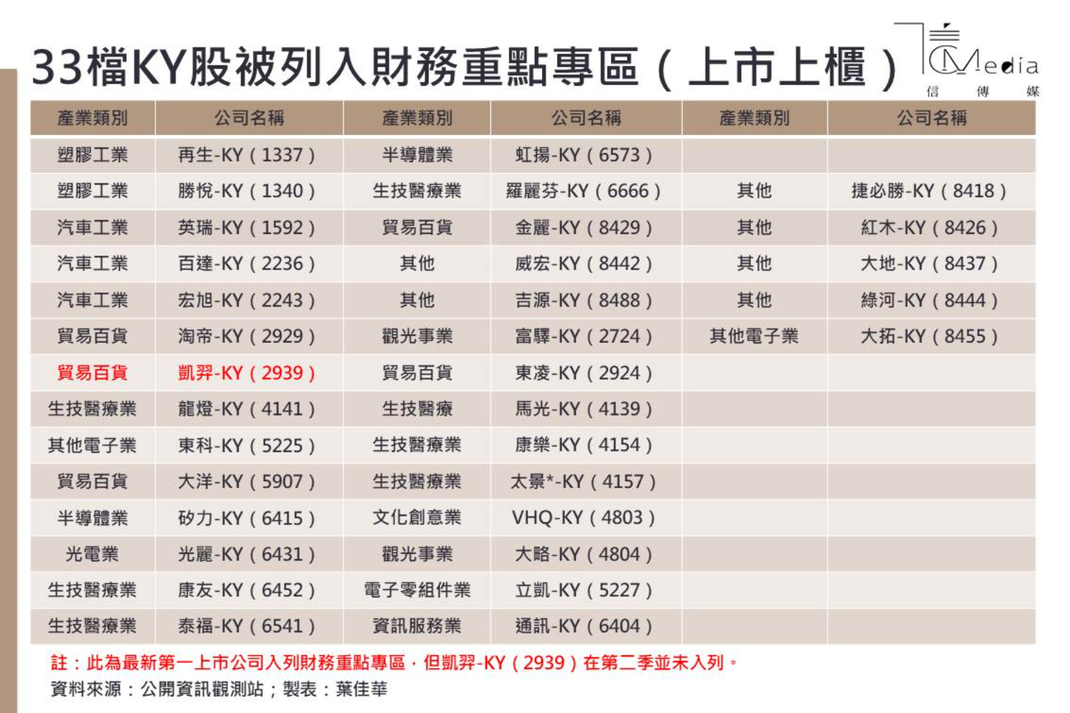 雖然證交所多次強調已針對海外來台掛牌的KY股祭出強化監理措施,其中一項就是針對列入財務重點專區公司提升監理頻率及預警性指標。但拿凱羿-KY一案來說,從公開資訊觀測站所設置的「財務重點專區」,依據第二季財報檢視,當時凱羿-KY並沒有被列入示警專區,但隨著凱羿-KY內控出現缺失,凱羿-KY才被納入專區,這樣的「落後指標」,投資人根本無法「提前留意風險」。