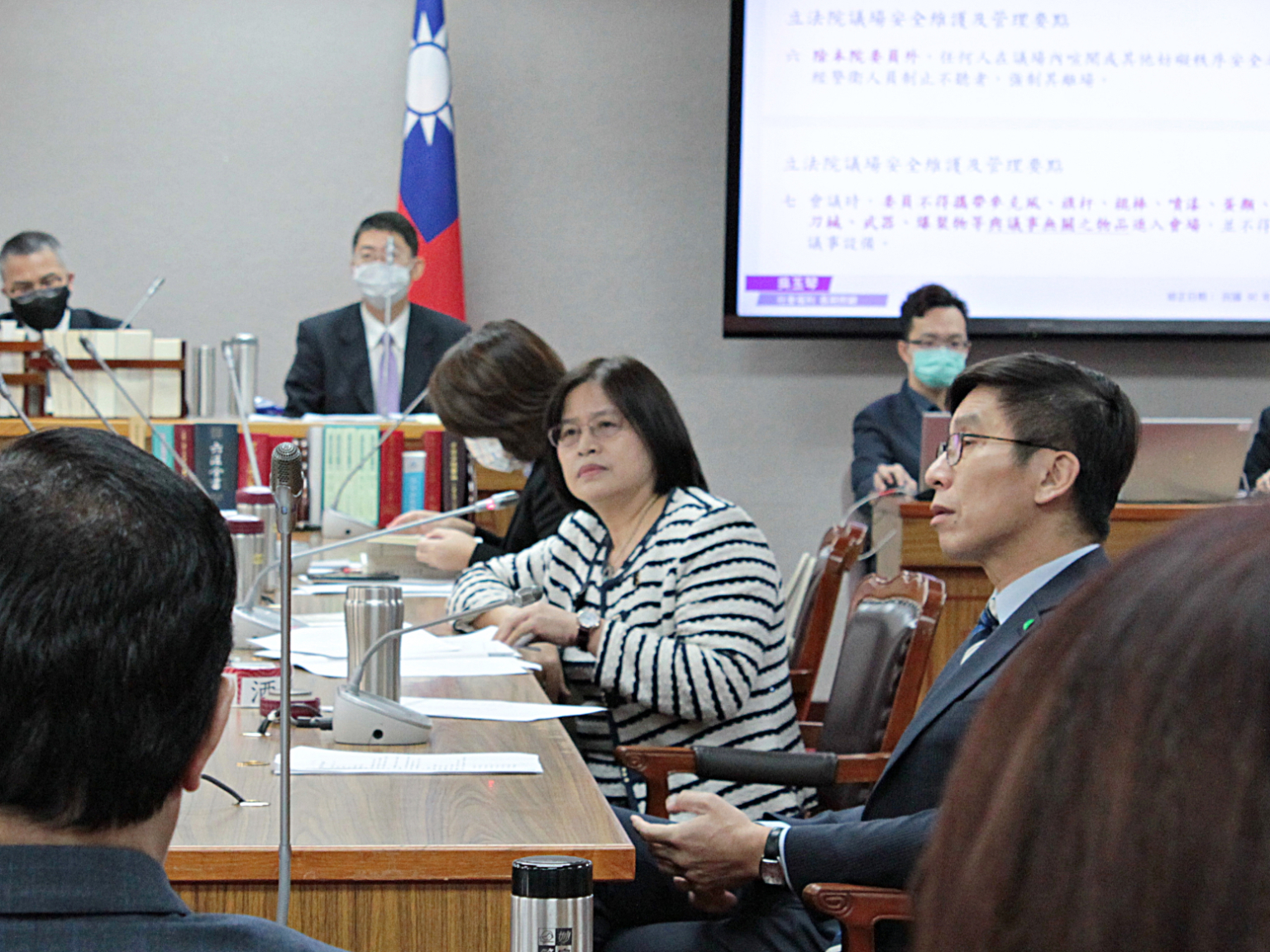民進黨立委吳玉琴指出,《立法院議場安全維護及管理要點》第7條規定:「會議時,委員不得攜帶麥克風、旗杆、棍棒、噴漆、蛋類、汽油、刀械、武器、爆裂物等與議事無關之物品進入會場,並不得破壞議事設備。」
