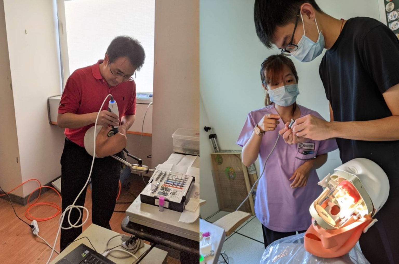 問到國產水雷射儀器去除牙根表面牙結石,與去除毒素效率是否比過往更高?喻大有表示這部分還不敢肯定,要做研究實驗證實,「但理論上雷射本身有熱效應,對傳統器械刮除有輔助的效果,是用不同角度去做清潔。」喻大有也提到,這些機器的進展除了供學生提早接觸使用,在評估像是作業、考試成品上也較客觀,「能直觀去看學生做的成品,3D空間呈現的結果如何。」