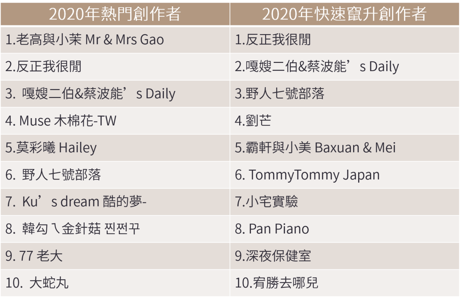 外國創作者大舉進攻「熱門創作者」