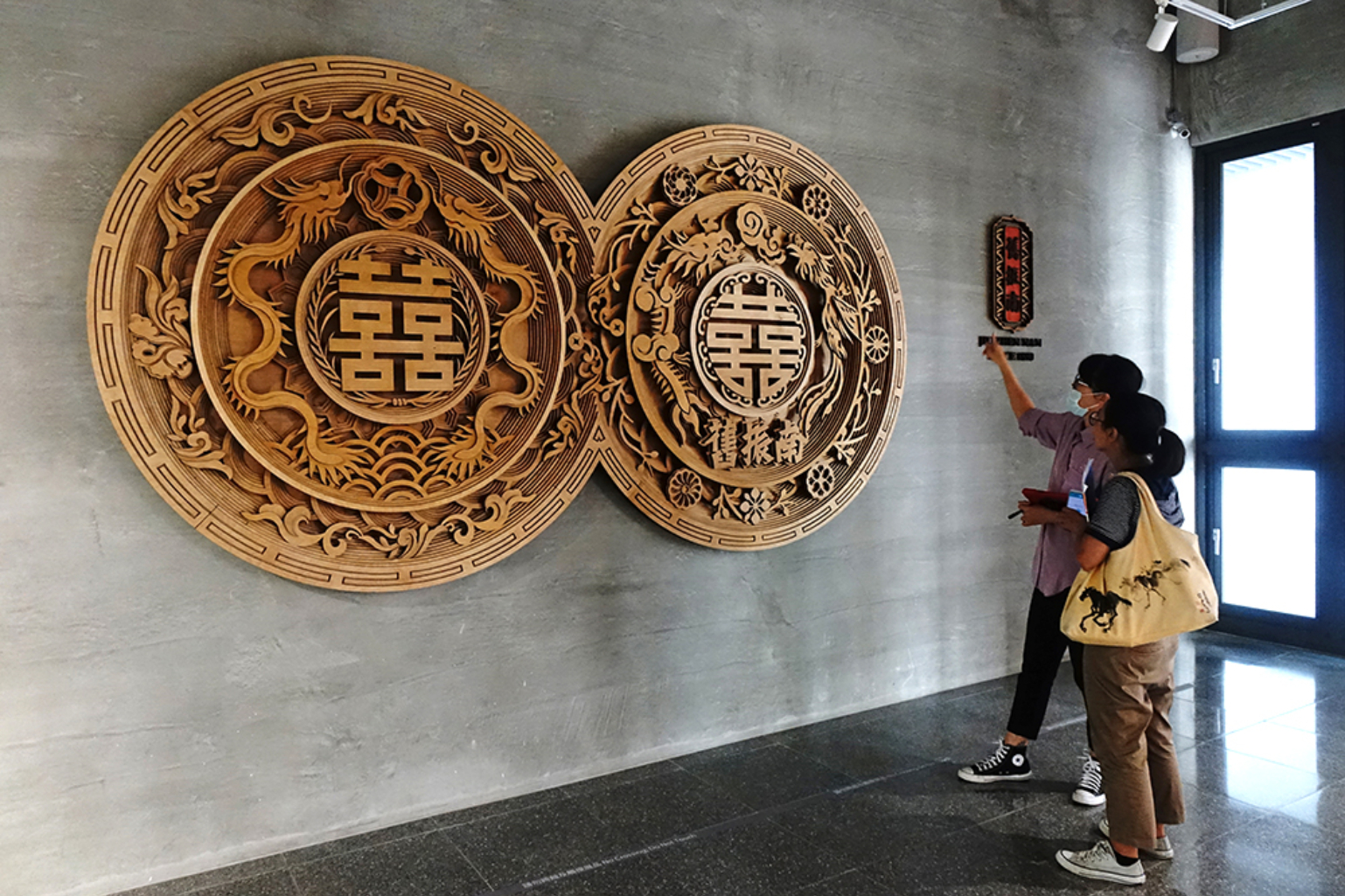 顛覆百年老品牌的傳統印象,舊振南漢餅文化館應用新科技,不只有李白和蘇東坡陪同喝茶、品嘗綠豆椪的AR初體驗,還有結合情境體驗與多媒體互動的「圓 Circle of Love-餅與喜事的情感連結」展覽,「囍事臨門」、「自由戀愛」、「數位愛情」三大主題,呈現不同時代的愛情觀、喜餅趨勢及婚俗文化。