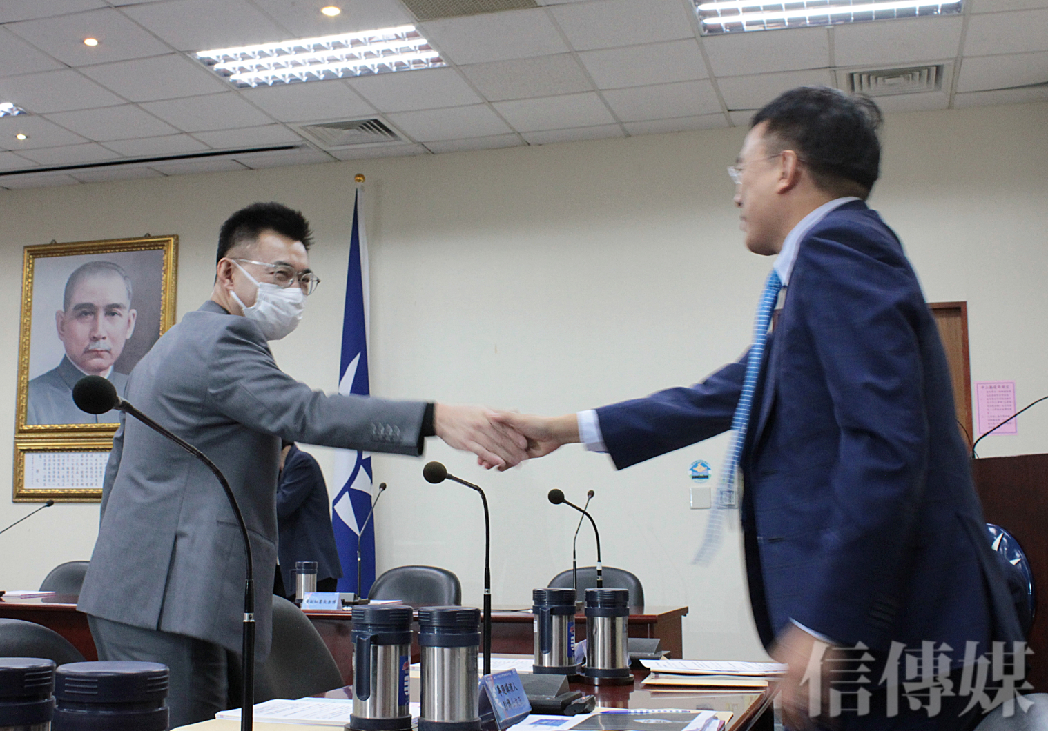 國民黨中常會今(9)日邀請前台灣大學新聞研究所長彭文正專題講演「新聞自由」,彭文正簡短演講新聞自由後,隨即大談「蔡英文假論文」,還要國民黨一起關心他的調查。對於彭文正的期盼,黨主席江啟臣只說,「他所追求的公平正義,也正是國民黨所追求的。」