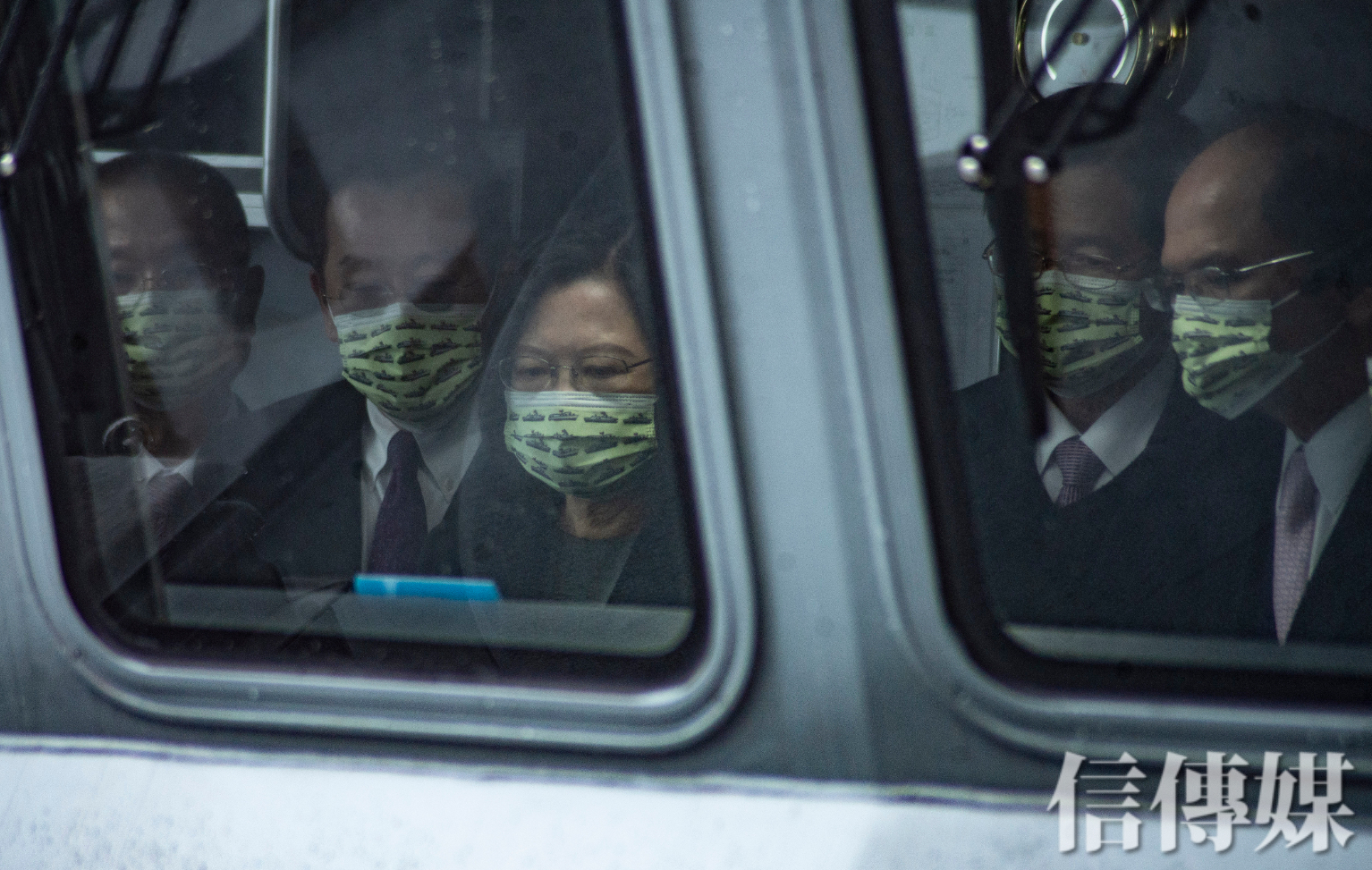 總統蔡英文與嚴德發、游錫堃、顧立雄等人登船視察另一艘首艇快速佈雷艦。(攝影/趙世勳)