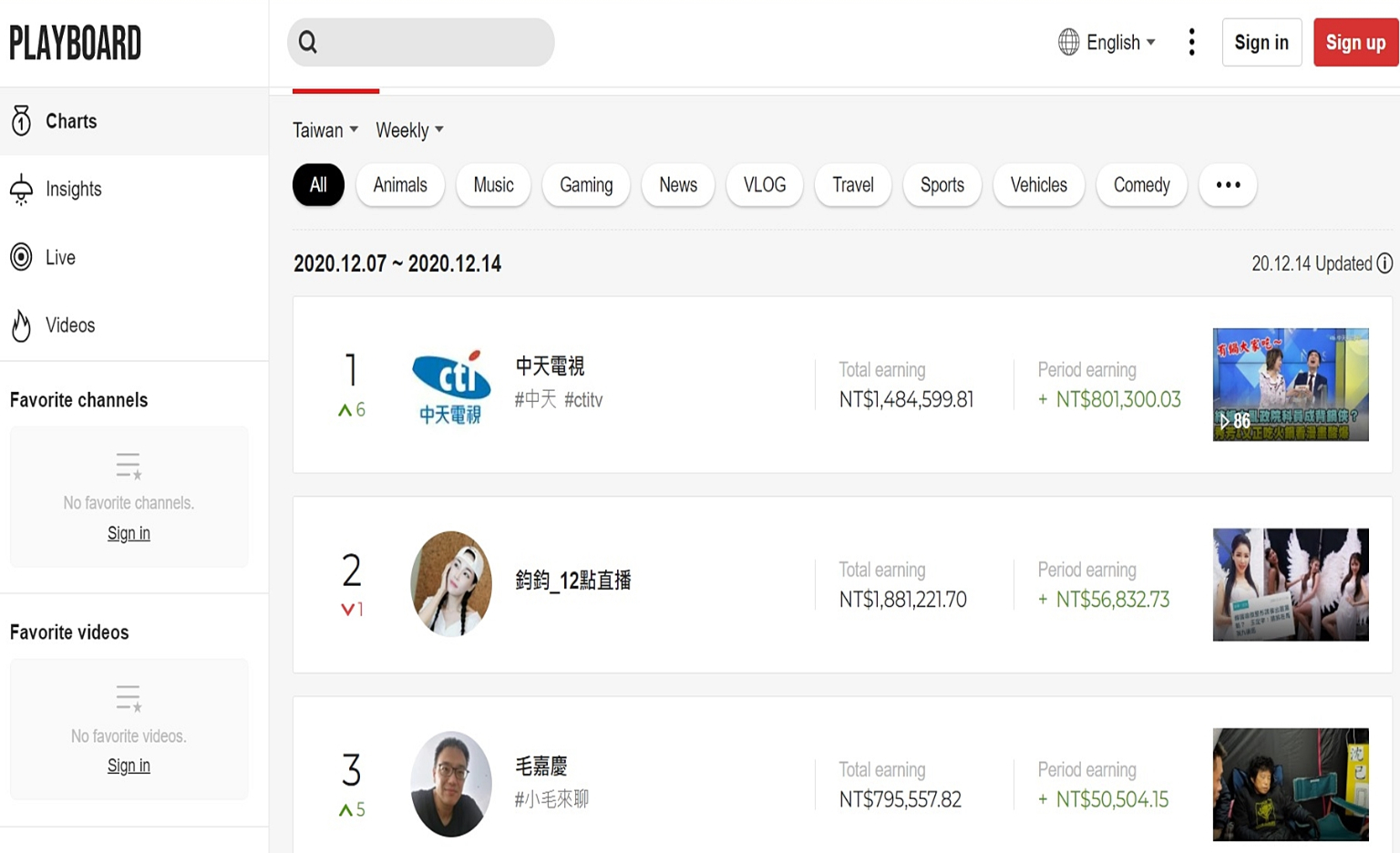 結果短短不到1週,截至今(16)日14時為止,中天的網路訂閱數竟衝破220萬人,觀眾抖內(賞金)總金額達到148萬元,並登上YouTube台灣抖內排行榜的單日及單週冠軍,全年排名亦前進到第6名,預估很快就會拿到冠軍。