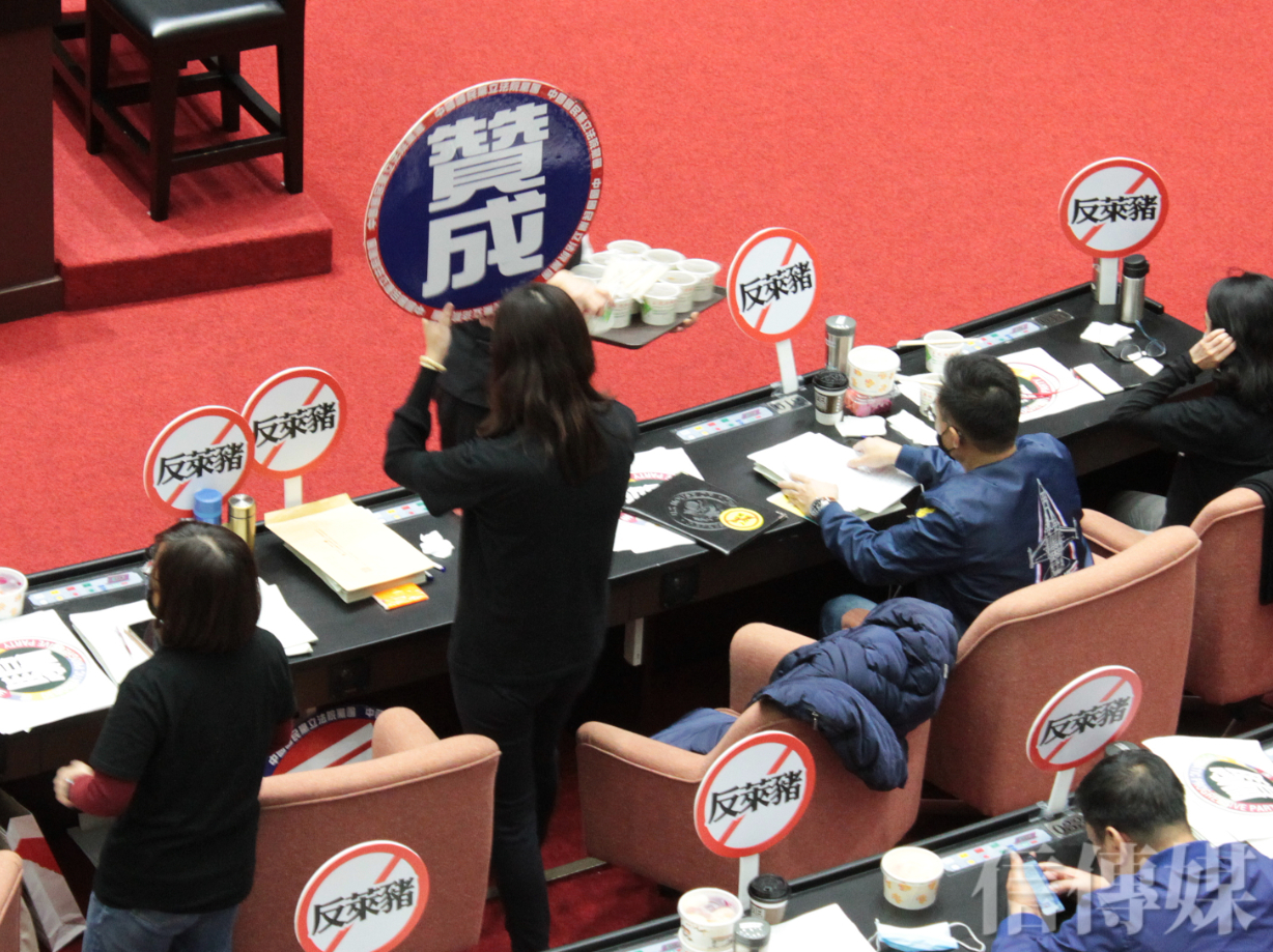 黨主席江啟臣傍晚在議場發表演說,坦承沒能阻止萊豬進口,遂率眾向國人鞠躬道歉,並痛批民進黨把民意當成塑膠,使得國會失能。為此他呼籲訴諸直接民意,盼全民參與明年8月28日國民黨號召的反萊豬公投。