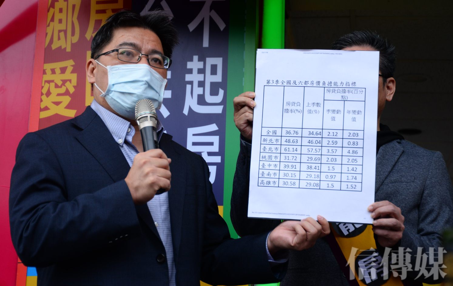 邱顯智也指出,六都購屋全都超出合理負擔範圍,全國房貸負擔率36.76%,桃園、台南、高雄更突破30%關卡,這是很嚴重事情。