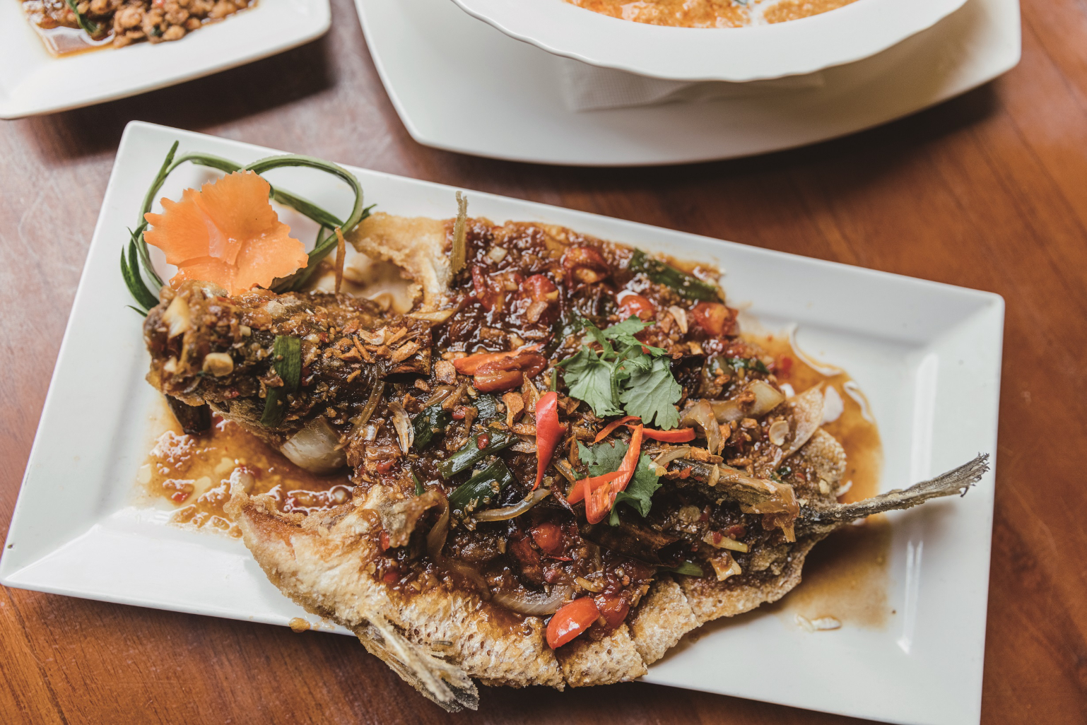 位於東豐街的「泰美泰國原始料理」主打泰北風格料理,保留更多泰國傳統菜色。在調味上,泰美運用泰國辣椒、羅望子乾、椰子糖等食材來維持辣、酸、甜的風味平衡,例如「泰北傳統脆炸羅望魚」搭配羅望子、檸檬皮製成的醬汁,十分開胃好下飯,再佐一口提味用的乾辣椒,讓整體香氣更加分明。另有以紅咖哩與椰漿做基底的「泰國傳統椰子蒸什錦海鮮」,溫和的辣味帶有香甜口感,與蝦子、花枝等鮮甜海味巧妙呼應。