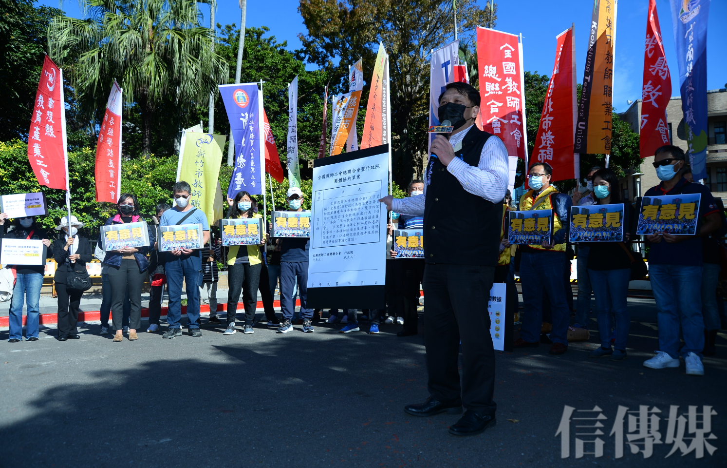 侯俊良搬出歷年教師薪資、人均等數據打臉中央,並依團體協約程序,向行政院提協商,要求納入教師代表。(攝影/趙世勳)