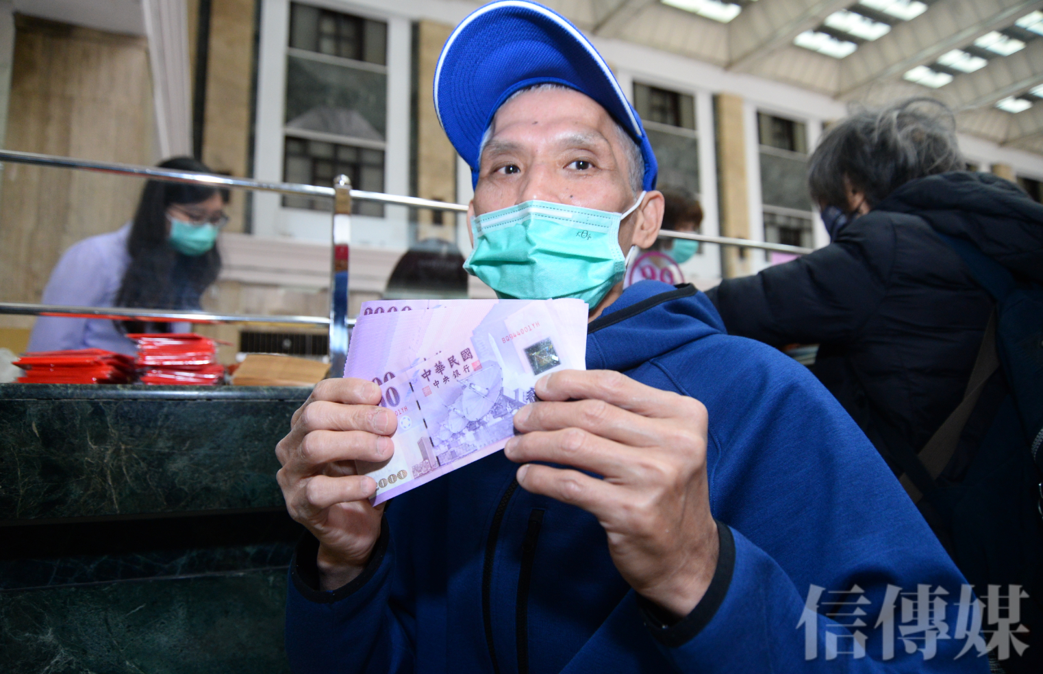 家住文山區的民眾吳先生表示,今天早上8時30分才抵達,卻意外排到第2名,吳先生說每年都會來台銀總行兌換新鈔,以往都是大排長龍,但他今天大概上午8時30分抵達,竟然能排第2位,深刻感受到疫情影響。