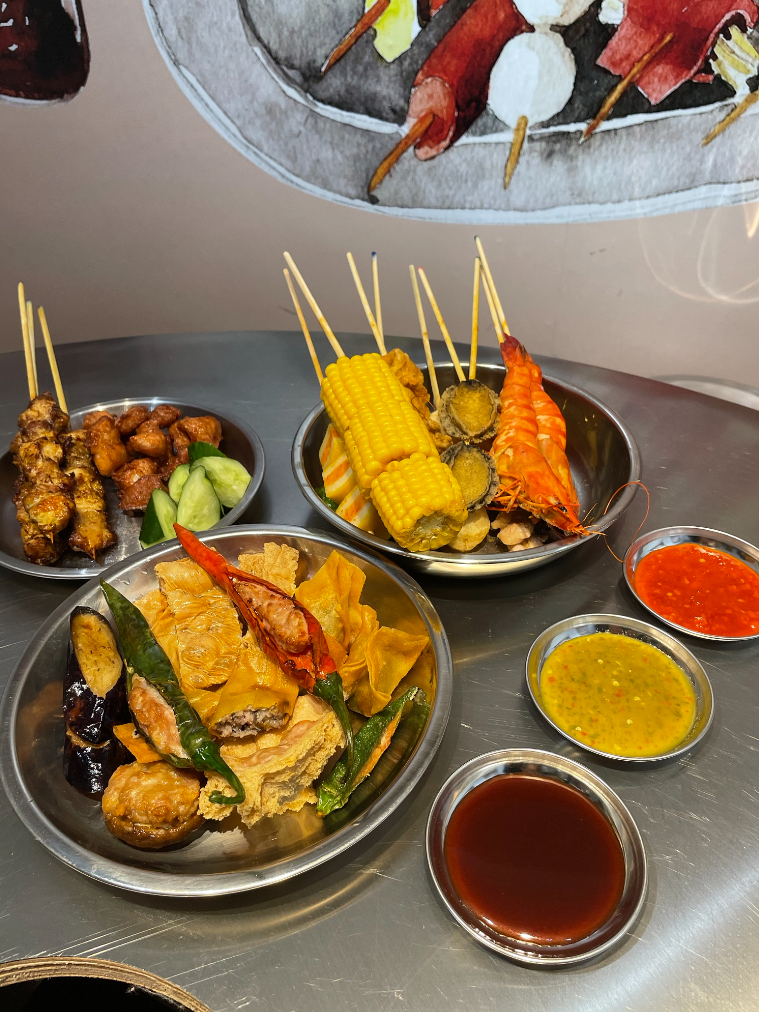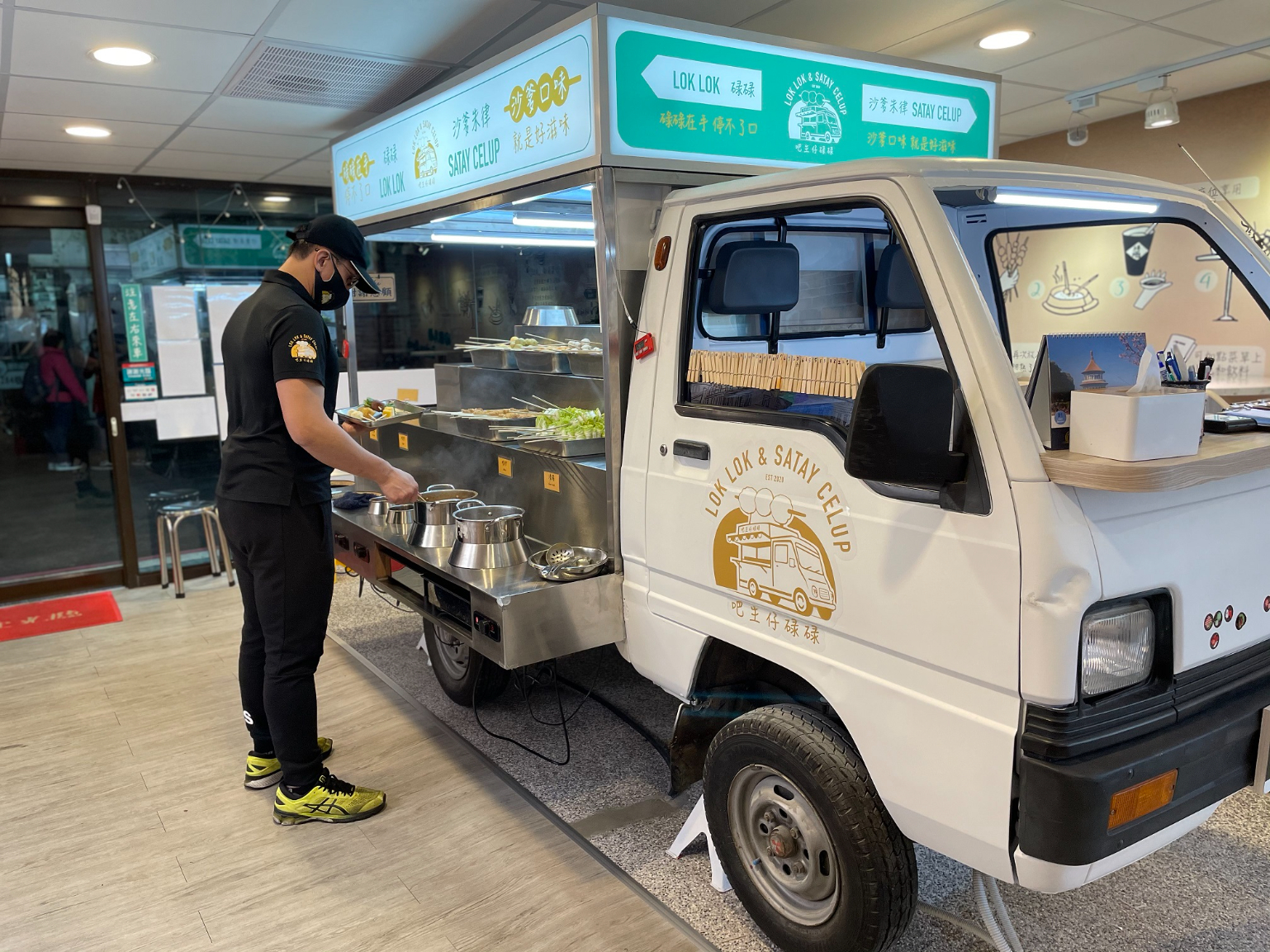 而提到吧生仔碌碌,就不能不介紹店內十分有特色的碌碌車。在馬來西亞街頭經常會看到有碌碌車販賣一串串的碌碌,有點類似台灣的關東煮,池雪麗把一台碌碌車搬到店內,讓空間氛圍彷彿回到馬來西亞。你可以把一串串食材放在想要的湯底裡,包括叻沙辣湯和清湯。