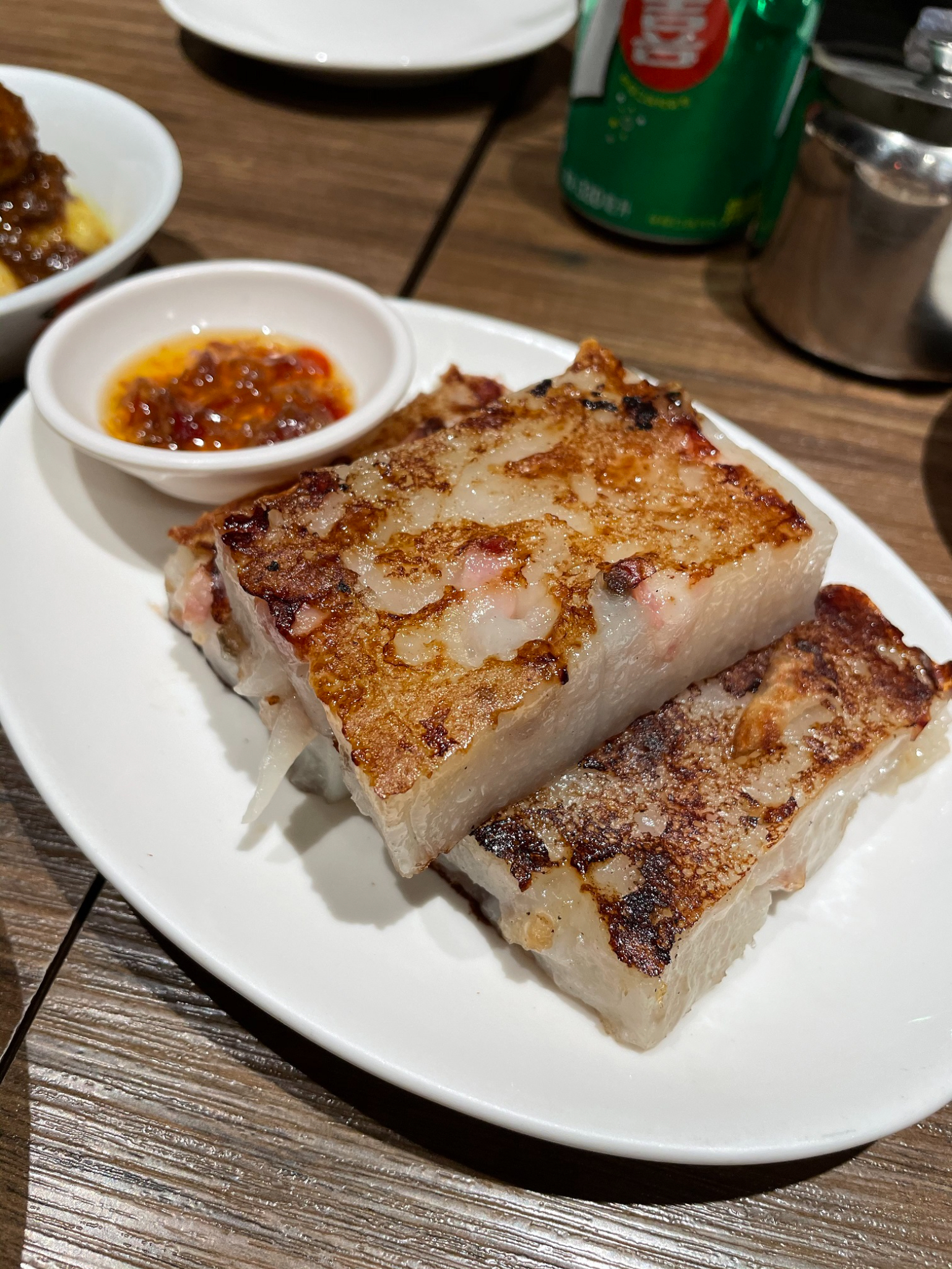狄達十分推薦新年必吃、同時具有好彩頭意象的港式蘿蔔糕,軟嫩口感搭配微辣的XO 醬,更加夠味。另一道推薦料理則是奶黃口味的法蘭西多士,裡面包夾著鹹甜風味的醬汁,搭配鬆軟麵包外皮,口感馥郁扎實,令人十分難忘。
