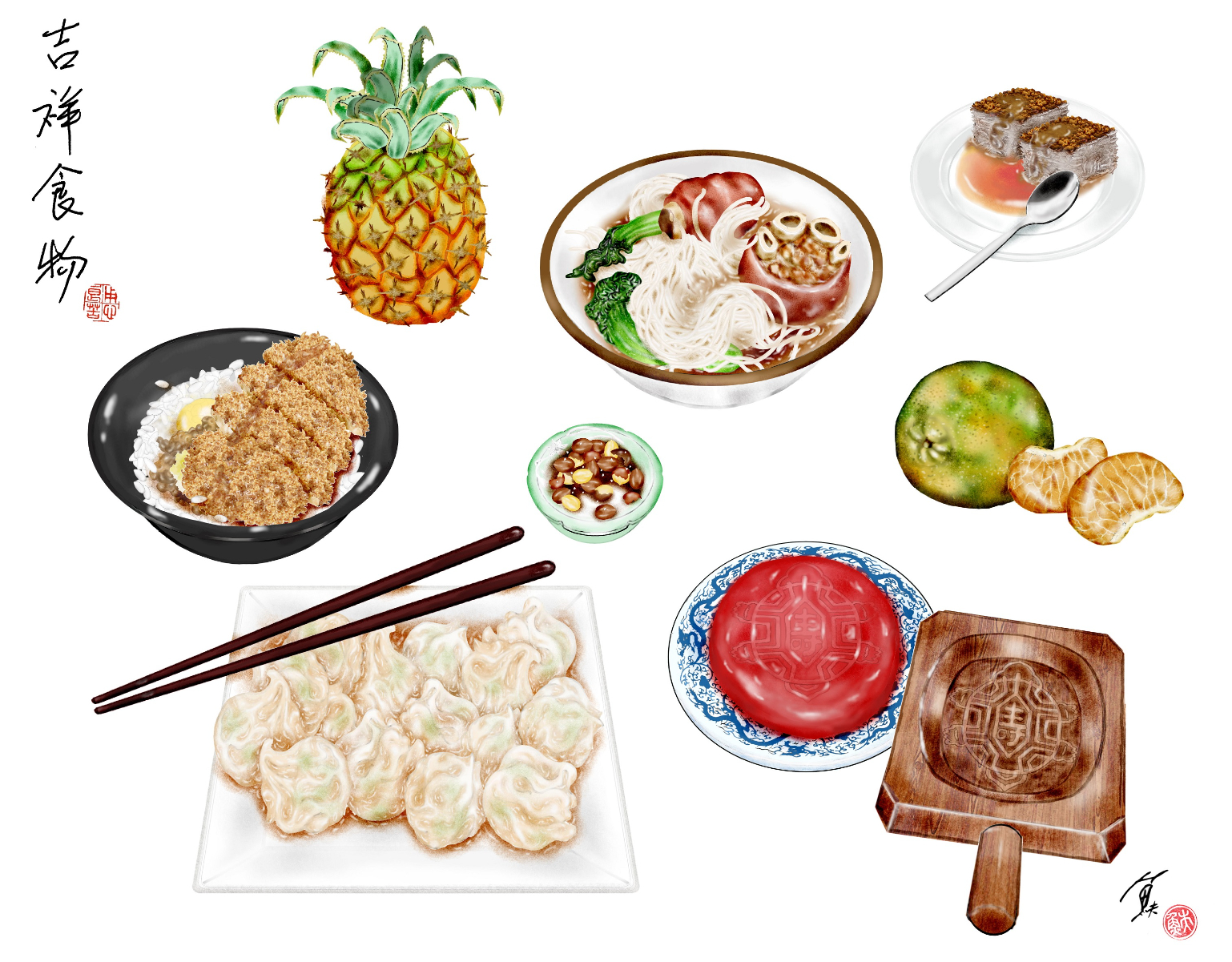 原來這世上吉祥食物如此之眾,我聊畫數樣表現,那些都是吃了就會賰家伙的啦。