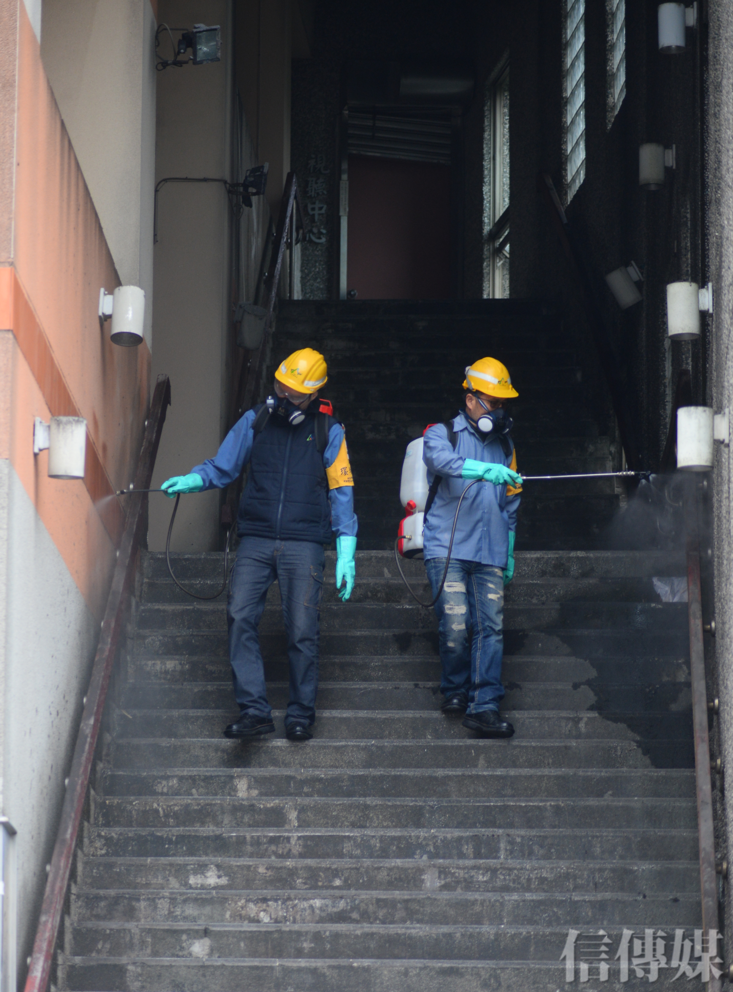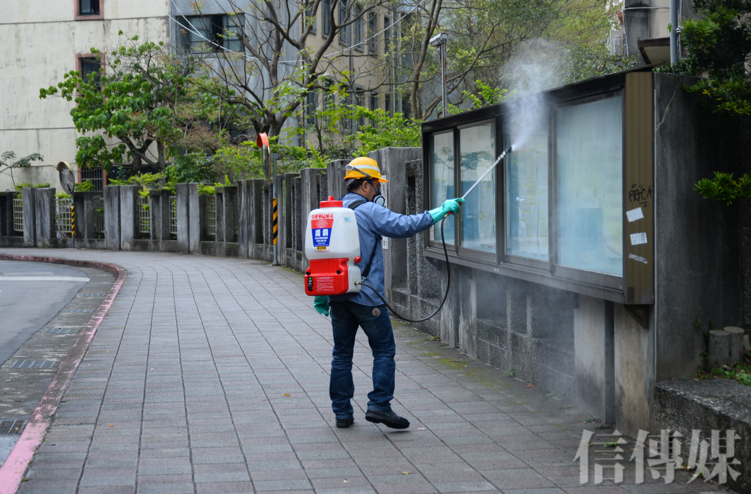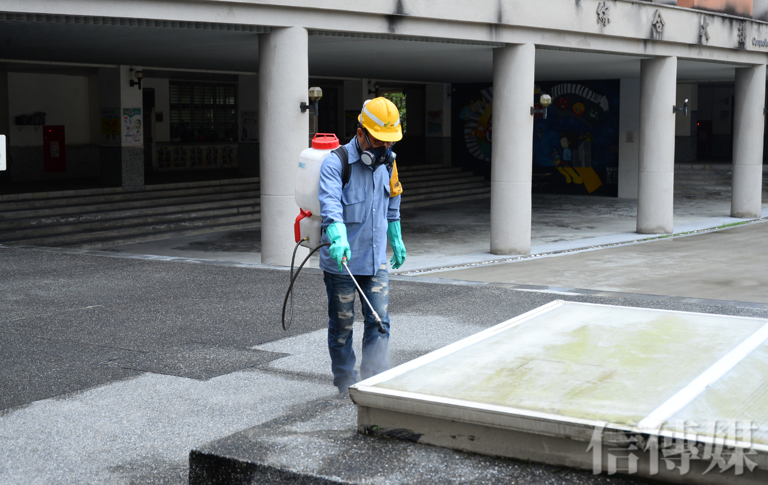 17日是開工日,各企業也在農曆休假日後回歸工作崗位,而對於環保機關來說,必須趕在下週的開學日前做好防疫準備。台北市許多高中職以下校園已在近日陸續完成校園環境消毒工作,工作人員在教室外的公共空間噴灑消毒水,各個角落都不放過,確實加強防疫,盼讓家長、學生都安心。