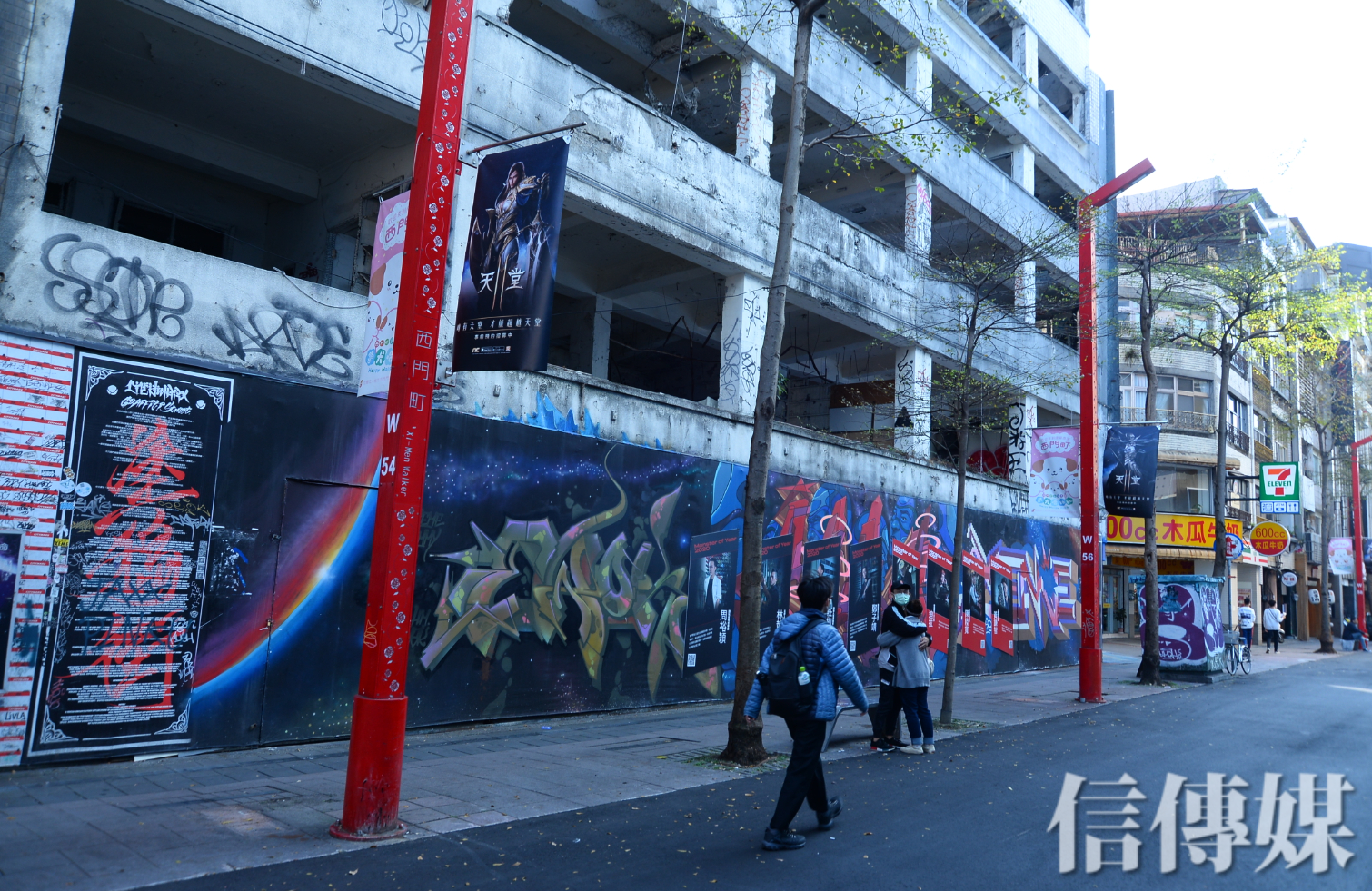 走進西門町鬧區,電影街上卻出現一棟醒目如同廢墟的建築物,露出鋼樑,白牆受到日積月累也出現斑駁脫落。