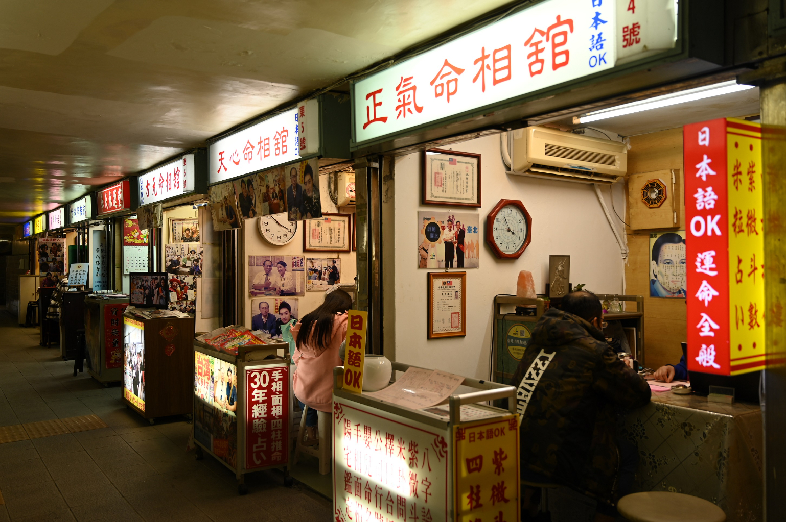 占事論命、新年開運,是本地生活中不可或缺的一環。龍山寺地下街的命理區以及以行天宮附近民權東路、松江路人行地下道空間為址的命理街,是台北市兩處知名的算命街。服務項目從八字論命、卜卦問事、開運面相至風水鑑定一應俱全,在此領域所累積的民間智慧,不僅為台灣民眾指點迷津,也吸引國外旅人來此探問。