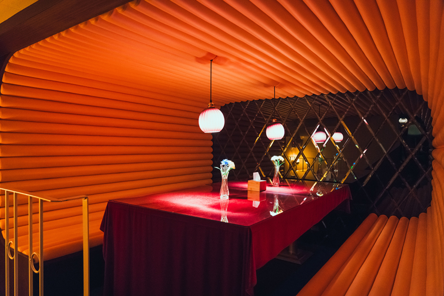 色彩繽紛的昭和摩登風烘托空間,彩色玻璃灑入溫柔光暉,串珠簾、老檯燈,一下子把人拉回高雄的流金歲月。早期高雄人常在透天厝設計夾層做儲物使用,而這半高不低的獨立空間,就成了萬.吧的秘密基地,菱形鏡面打造60年代風格太空艙,以及鋪上榻榻米的和風角落,每個小空間都彷彿舞台劇場景,令人沉浸其中。