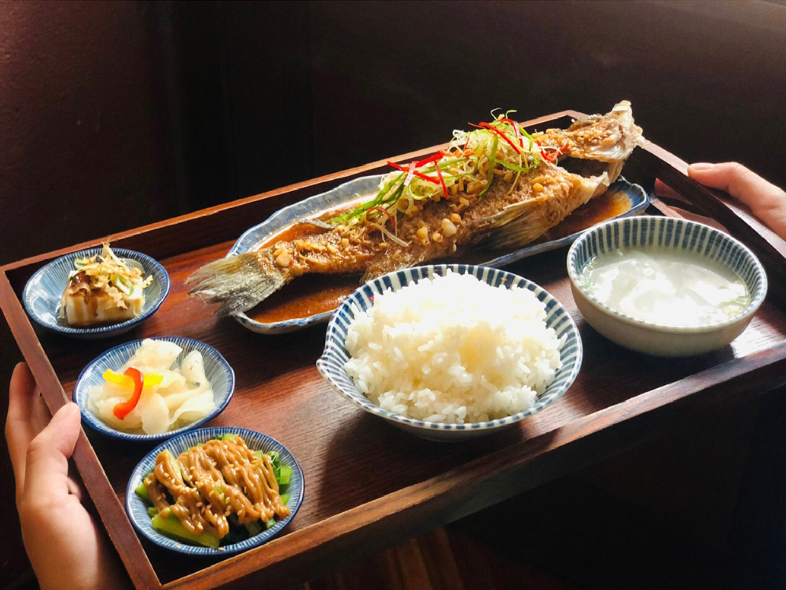 以日式小碟盛裝的雅緻定食,提供的是喚起兒時回憶的懷舊台菜,One堅持好吃的台菜一定要有辣椒、蒜頭、薑等喚起味覺的香辛料,招牌菜恰恰紅燒魚將金目鱸魚半煎炸後紅燒,最後灑上薑絲蒜碎,淋油爆香。「吃完就會想要跳恰恰。」One笑說。另一道辣炒鹹瓜三層肉,One很「任性」地猛下辣椒蒜頭,鹹香帶勁、教人噴汗的痛快爽辣感,One直笑道:「可以配三碗白飯、再喝兩瓶酒。」