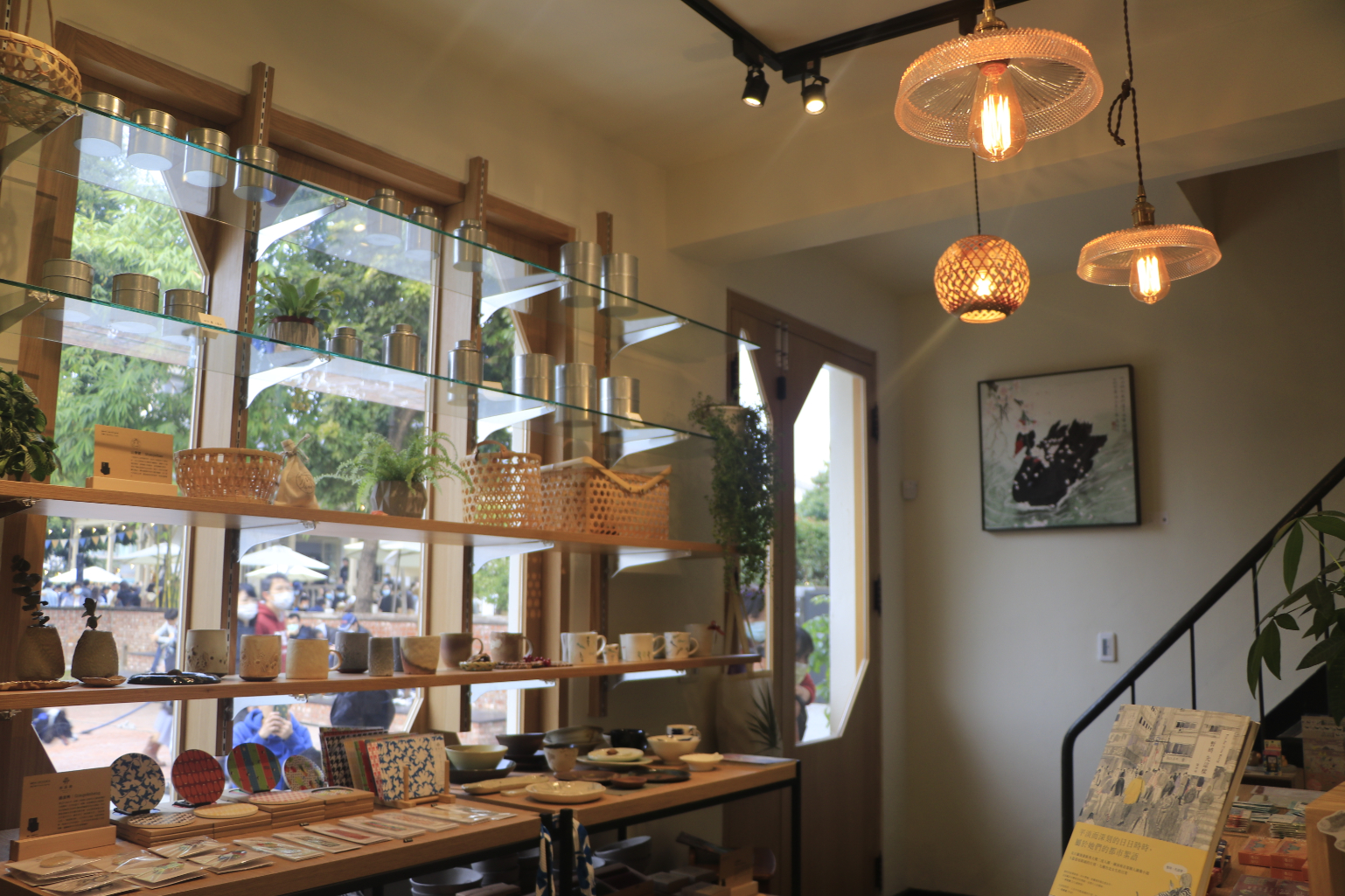 去年底,前南一中職務宿舍牆面陸續掛上 9 間入選者的招牌,緊鄰育樂街的是「圍讀珈琲」,以《美印臺南》多年來看見的臺南為出發點,兼具餐點、咖啡店、品茶、展場、在地選物與沙龍講堂,2 樓還隱藏一間店中店是擅長節氣茶席的「有時甘杯」;隔壁是知名網路乾燥花店「WANYI 玩藝花坊」實體店。
