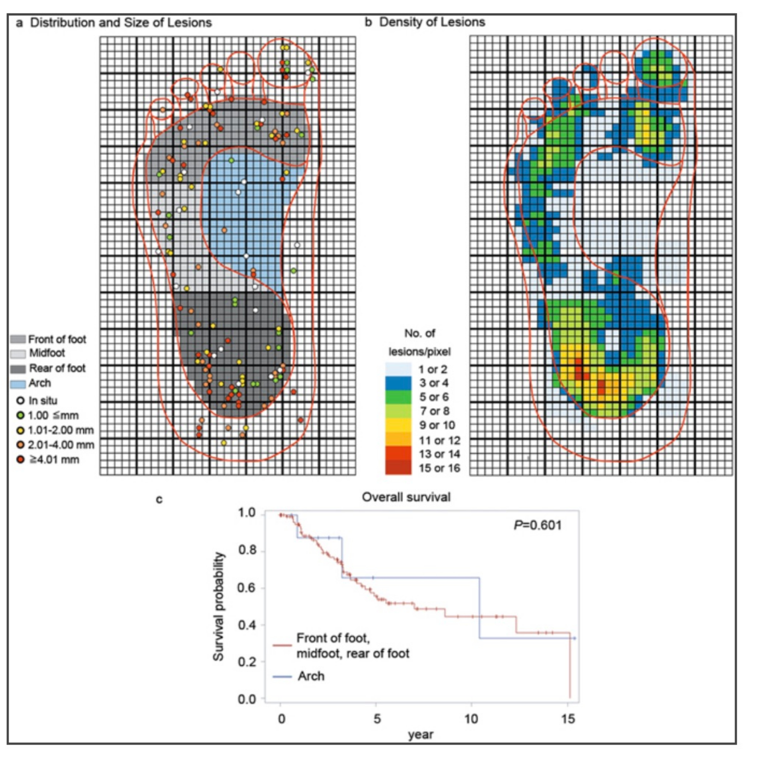 朱家瑜補充,亞洲人惡性黑色素瘤的好發部位為四肢肢端,如手指腳趾、手掌腳掌、趾甲等較難察覺處,「但根據調查,民眾對指甲、腳底等肢端痣的重視程度相當低,僅不到1成民眾會特別留意指甲、腳底等部位,恐錯失惡性黑色素瘤早期的黃金治療期。」