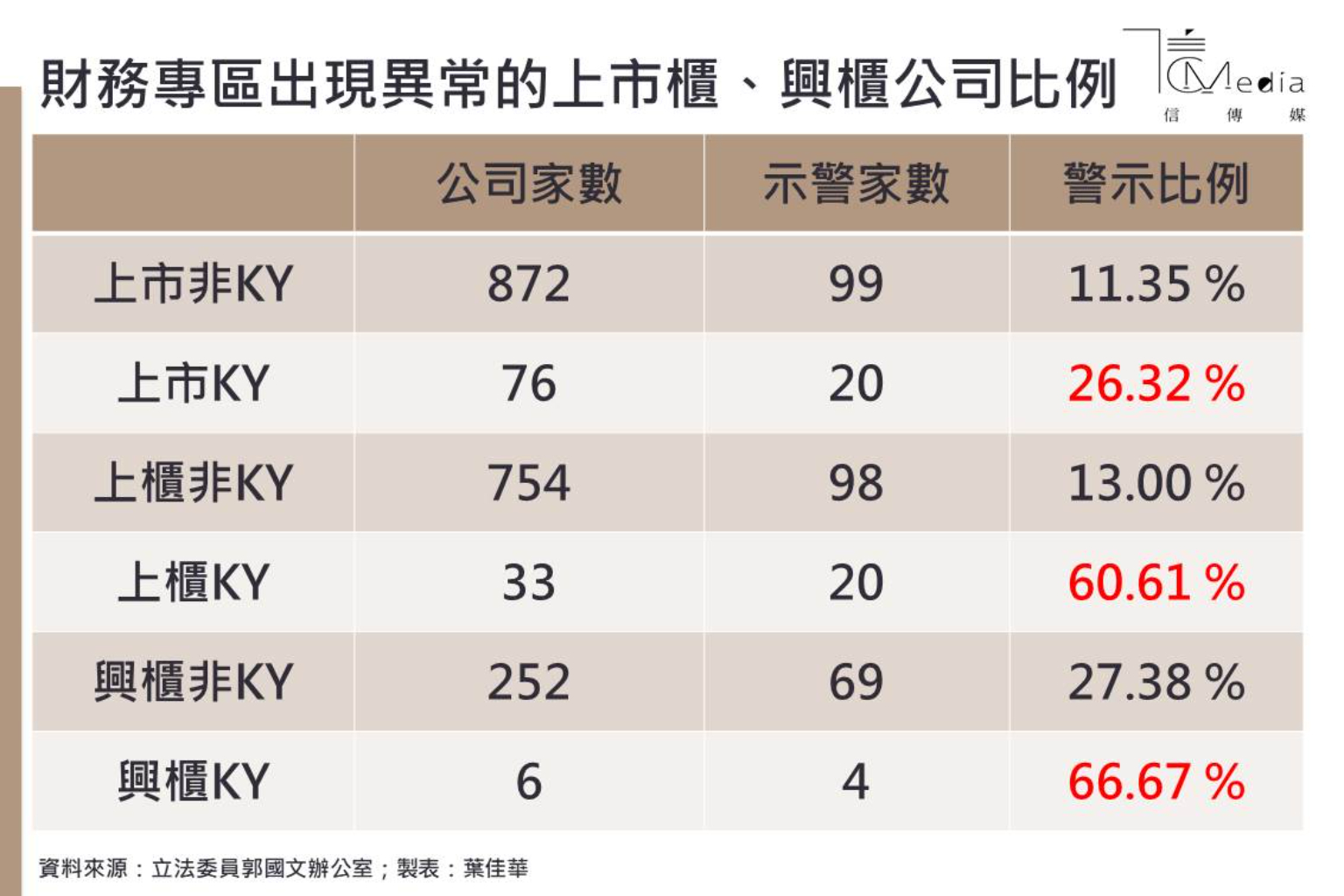 上市KY股異常是非KY股的2倍,立委建議入列警示區就要實地查核
