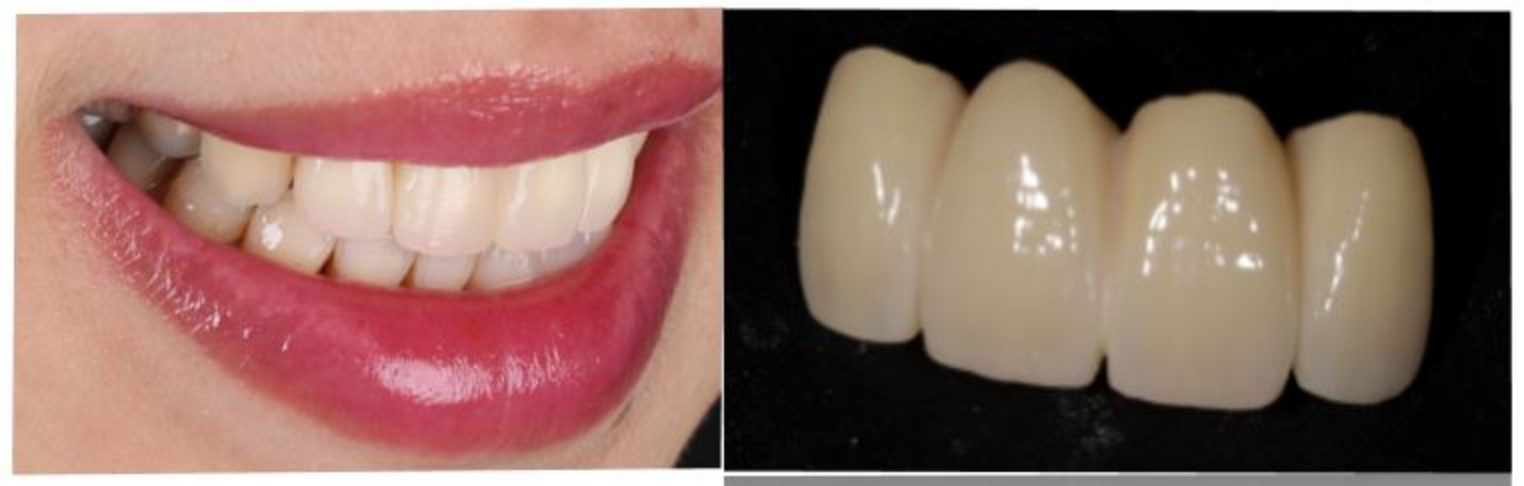 目前市面上固定假牙可供選擇材質很多,傳統金屬陶瓷假牙除了內層金屬層,外層會燒上陶瓷去模擬牙齒顏色,但因金屬層透光性差,顏色常常較為死白不自然,且可能有陶瓷崩裂的風險。